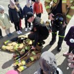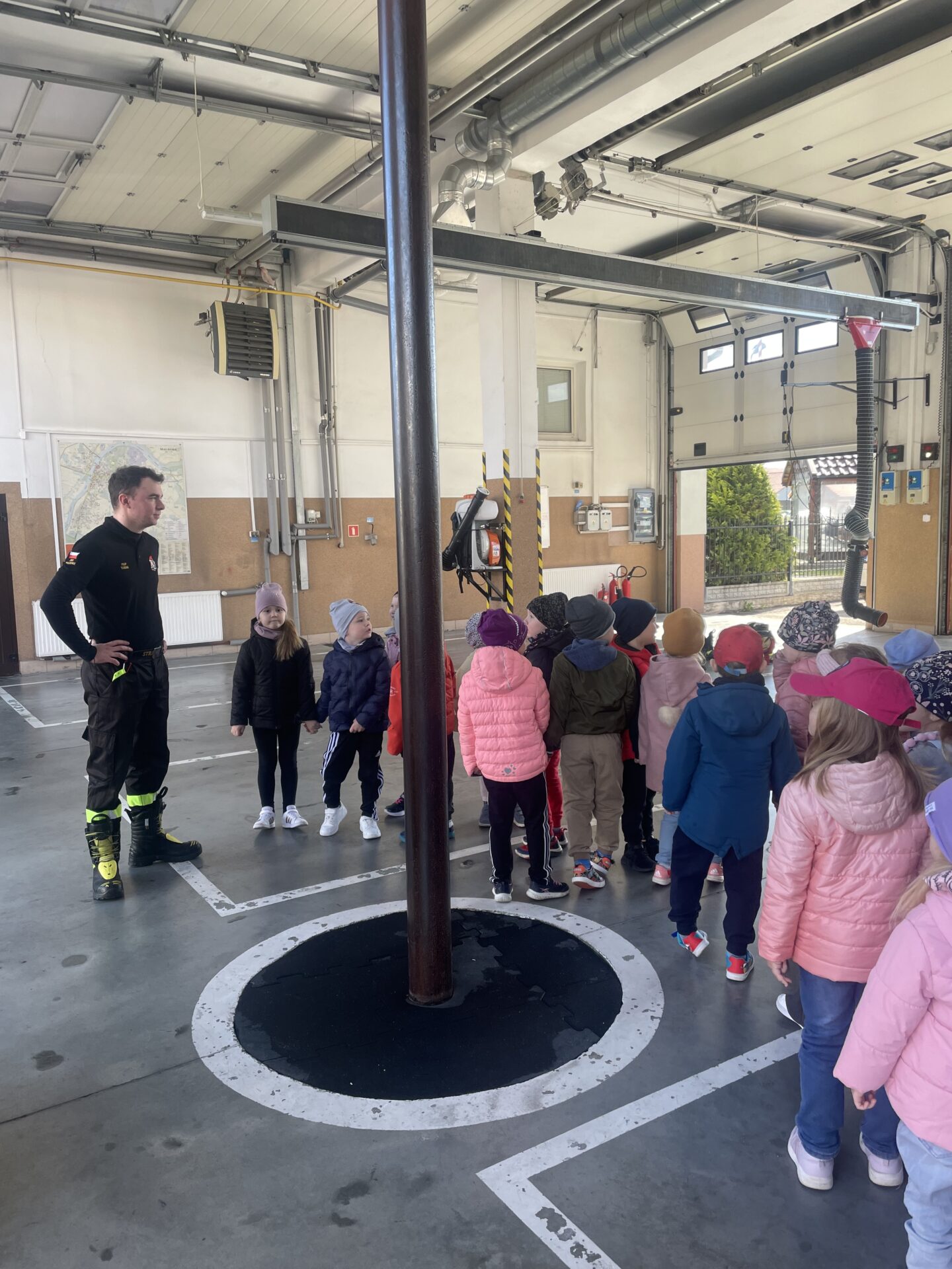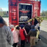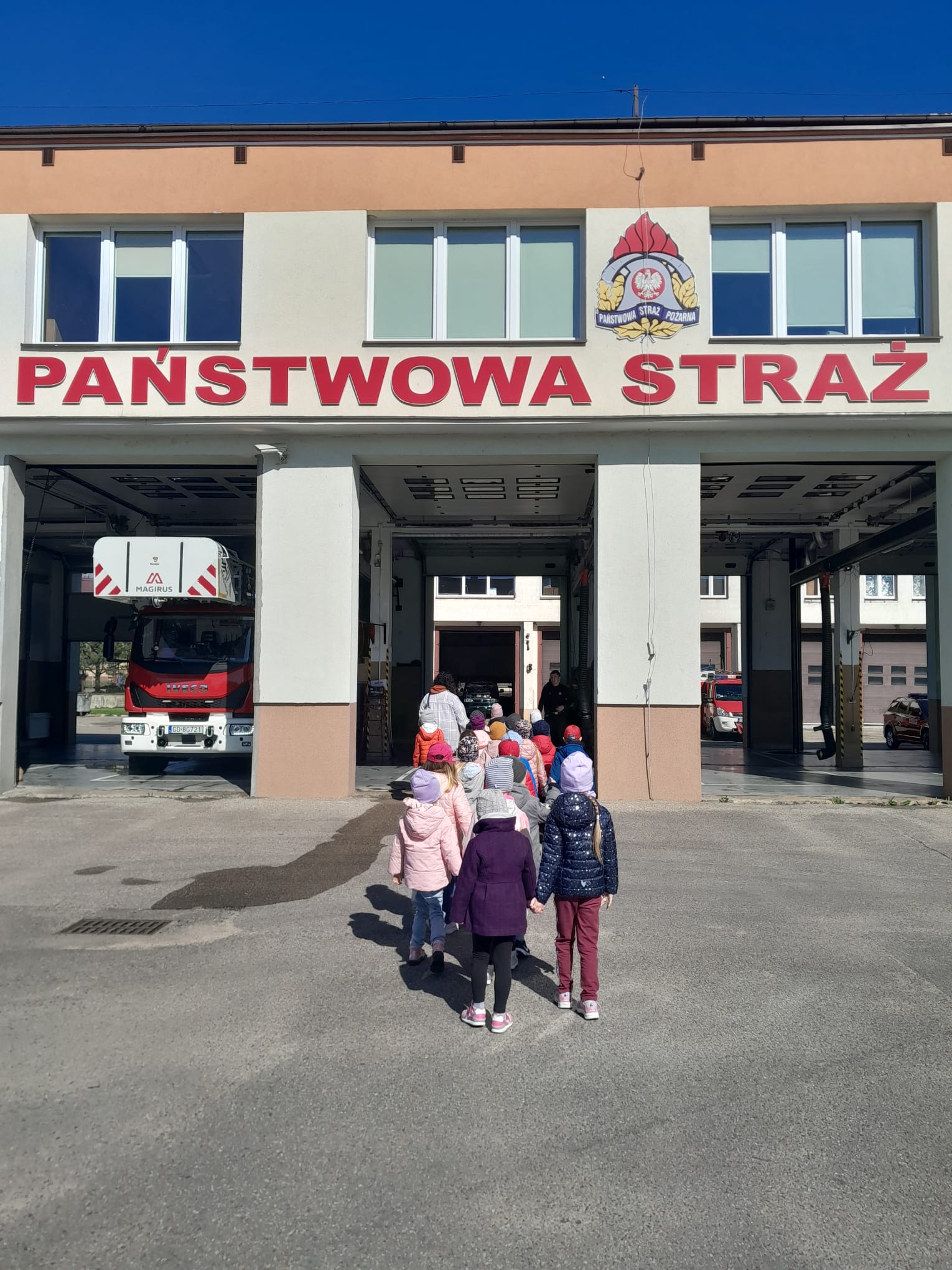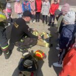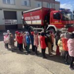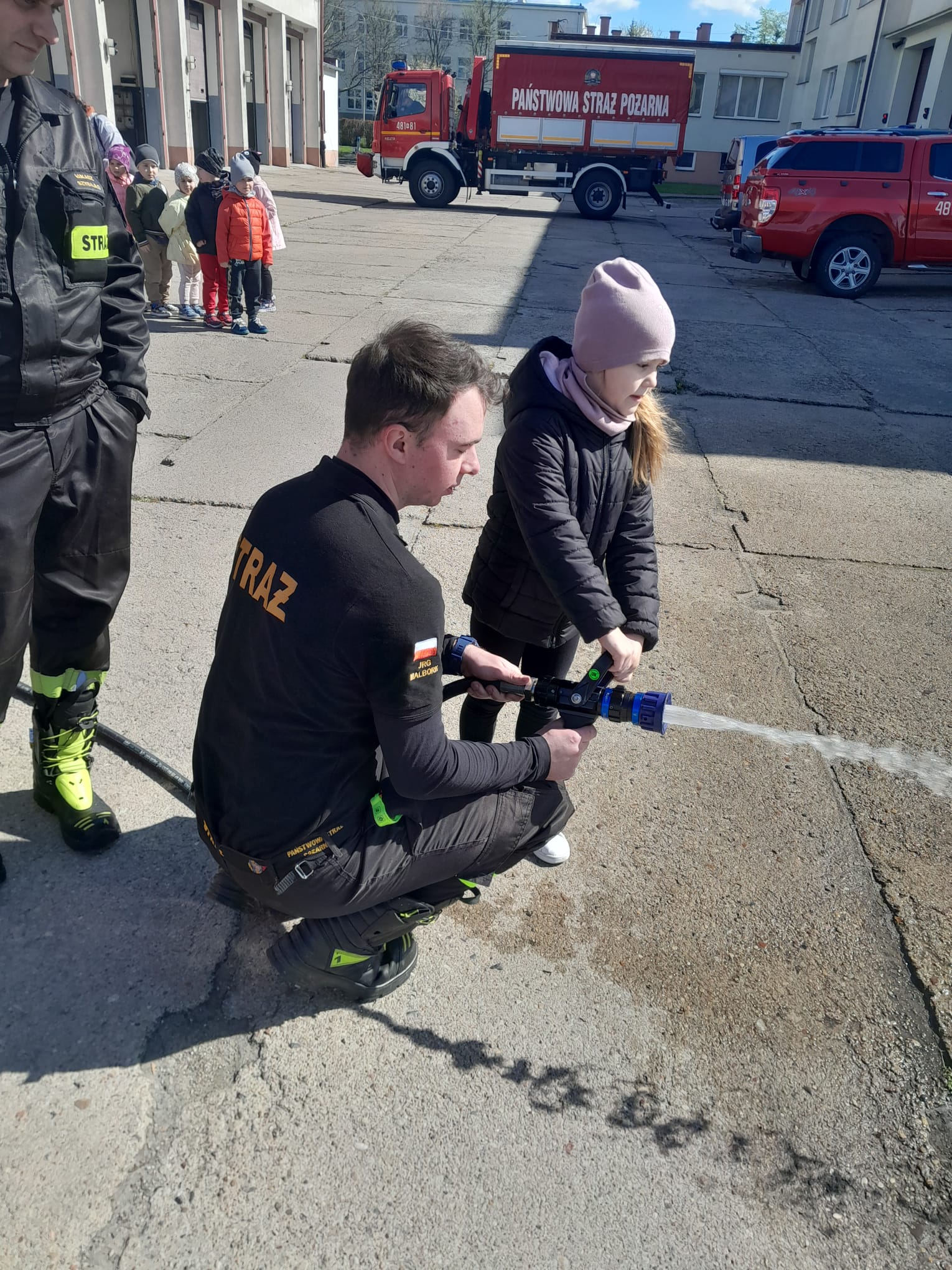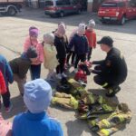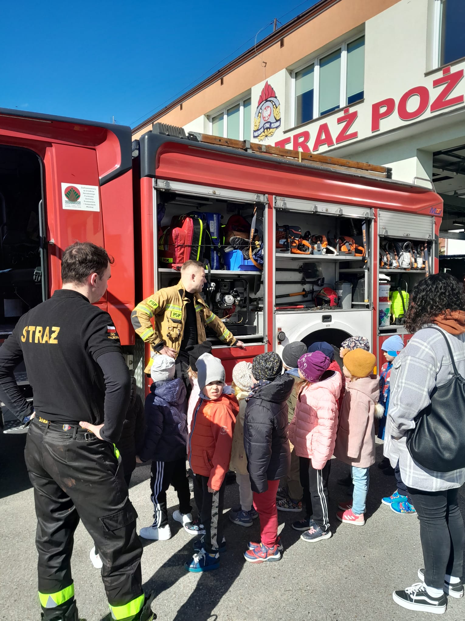 W piątek 28 kwietnia 2023r. przedszkolaki z grupy „Słoneczniki” wybrały się z Panią Natalią na wycieczkę do Komendy Powiatowej Państwowej Straży Pożarnej w Malborku. Dzięki życzliwości Panów Strażaków dzieci mogły z bliska obejrzeć wozy strażackie oraz sprzęt pożarniczy. W trakcie rozmowy ze strażakami przedszkolaki dowiedziały się dużo na temat pracy strażaka, która na co dzień wymaga od niego dużo odwagi, siły oraz ogólnej sprawności. Przedszkolaki dowiedziały się, że strażak pomaga nie tylko w czasie pożaru, ale także wspomaga policję i inne służby ratownicze podczas wypadków drogowych oraz wodnych. Dzieci miały możliwość obserwacji obsługi poszczególnych narzędzi i sprzętów, poznały przeznaczenie i działanie hydrantu, a także obejrzały dokładnie cały strój strażaka.