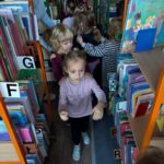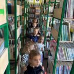 Pani bibliotekarka przeczytała dzieciom ciekawą bajkę i zaprosiła do wspólnej rozmowy o książkach. Następnie oprowadziła dzieci po bibliotece, pokazała różne działy księgozbioru, w tym dział książek dla dzieci. Dzieci zwiedzając zakątki biblioteki miały okazje potrenować spostrzegawczość, szukając ukrytych postaci literackich między książkami.