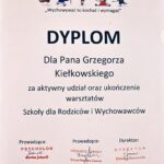 Kolejna grupa rodziców uczniów naszej szkoły ukończyła cykl zajęć „ Szkoły dla Rodziców i Wychowawców”. Zajęcia odbywały się raz w tygodniu przez dziesięć tygodni. Były realizowane warsztatowo, z zastosowaniem praktycznych ćwiczeń takich jak: drama, powrót do wspomnień z dzieciństwa, autorefleksja, wymiana doświadczeń, stosowanie nowych sposobów komunikowania się. Szkoła dla Rodziców i Wychowawców jest nieustanną formą dialogu z dzieckiem. Jest to program spotkań mających na celu doskonalenie umiejętności nawiązywania autentycznych relacji z dziećmi.