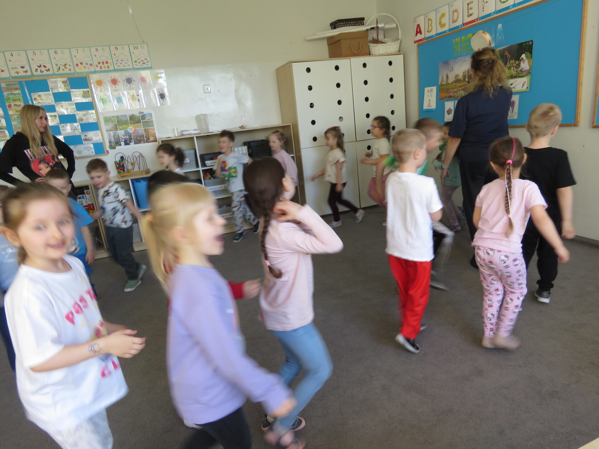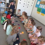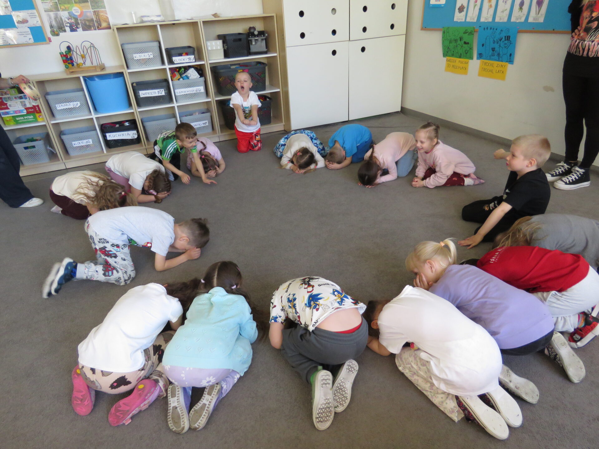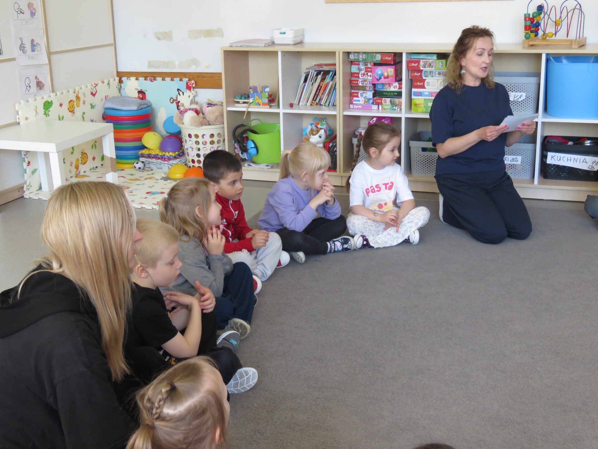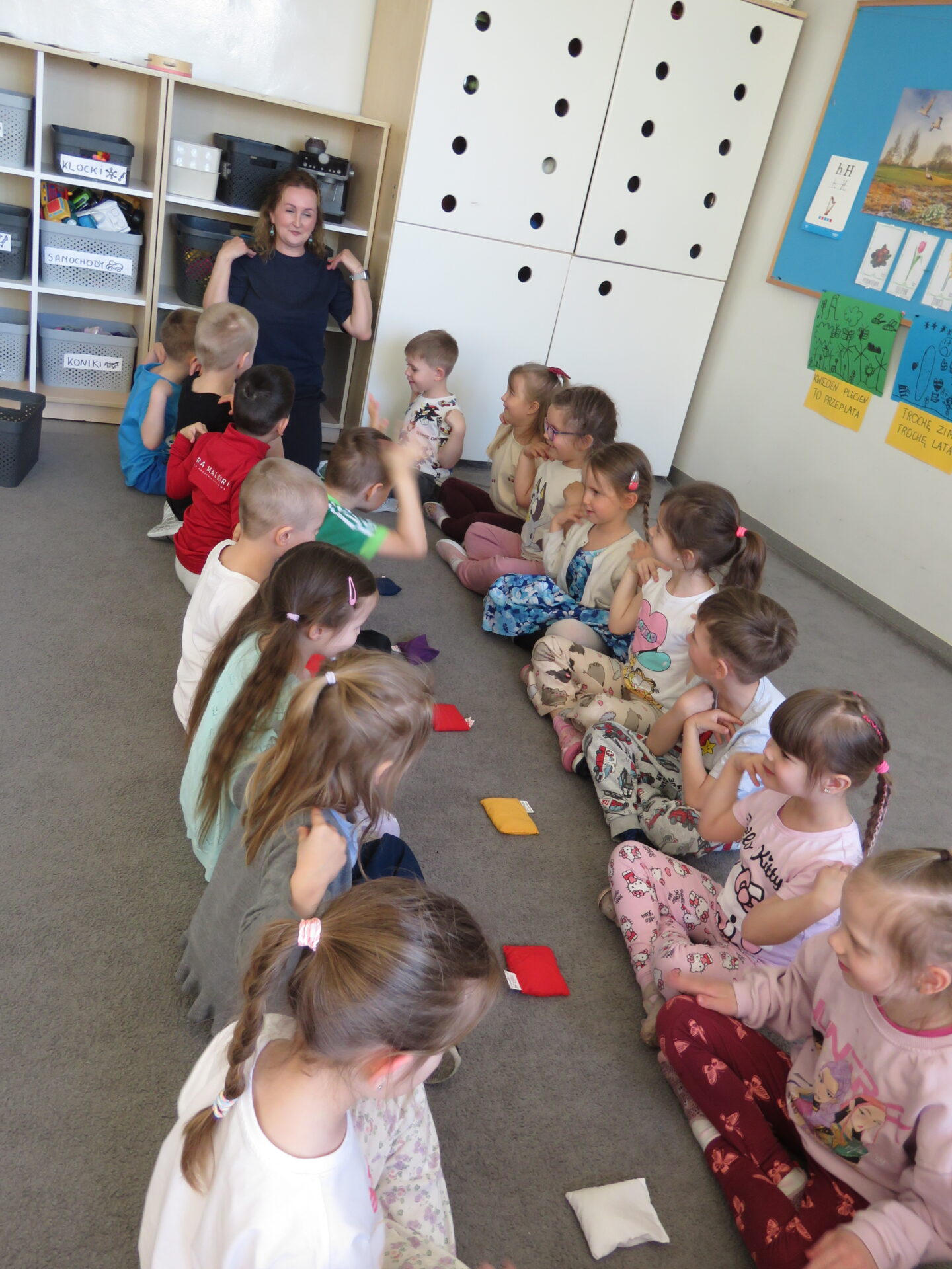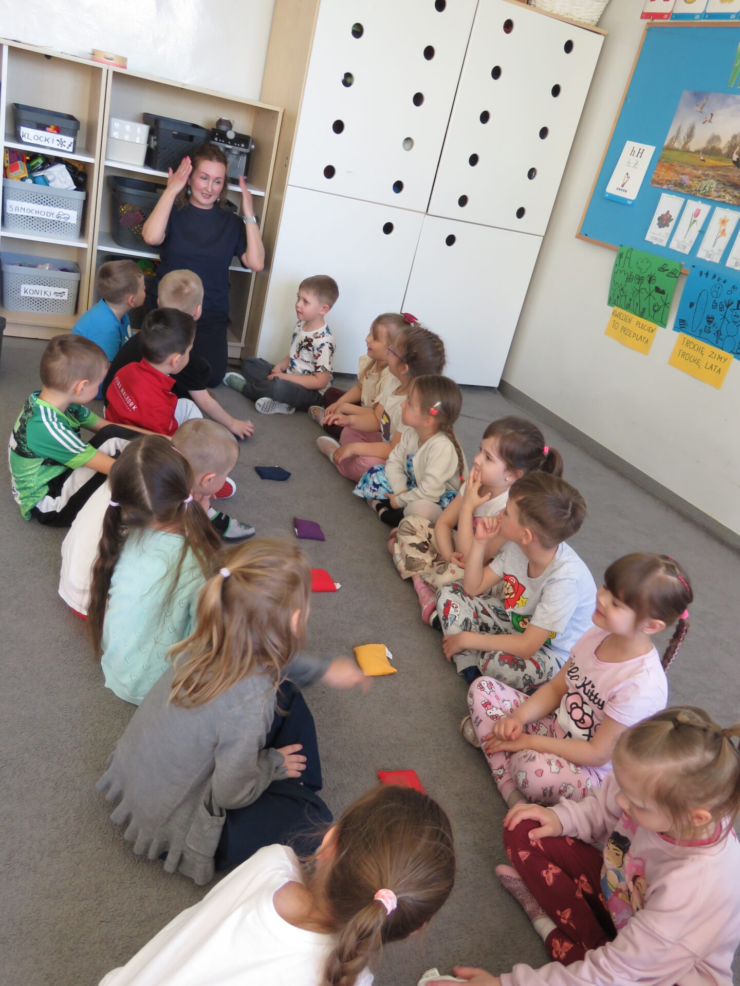 Dnia 20.04.2026r. nauczycielka grupy przedszkolnej „Fiołki” Pani Kamila Kapuścińska zorganizowała zajęcia otwarte na temat nowej pory roku – wiosny. Zajęcia obserwowały nauczycielki z naszego przedszkola. Na początku Pani Kamila zaprosiła dzieci do zabawy na powitanie, następnie wprowadziła przedszkolaków do zajęć zagadką o wiośnie.
