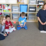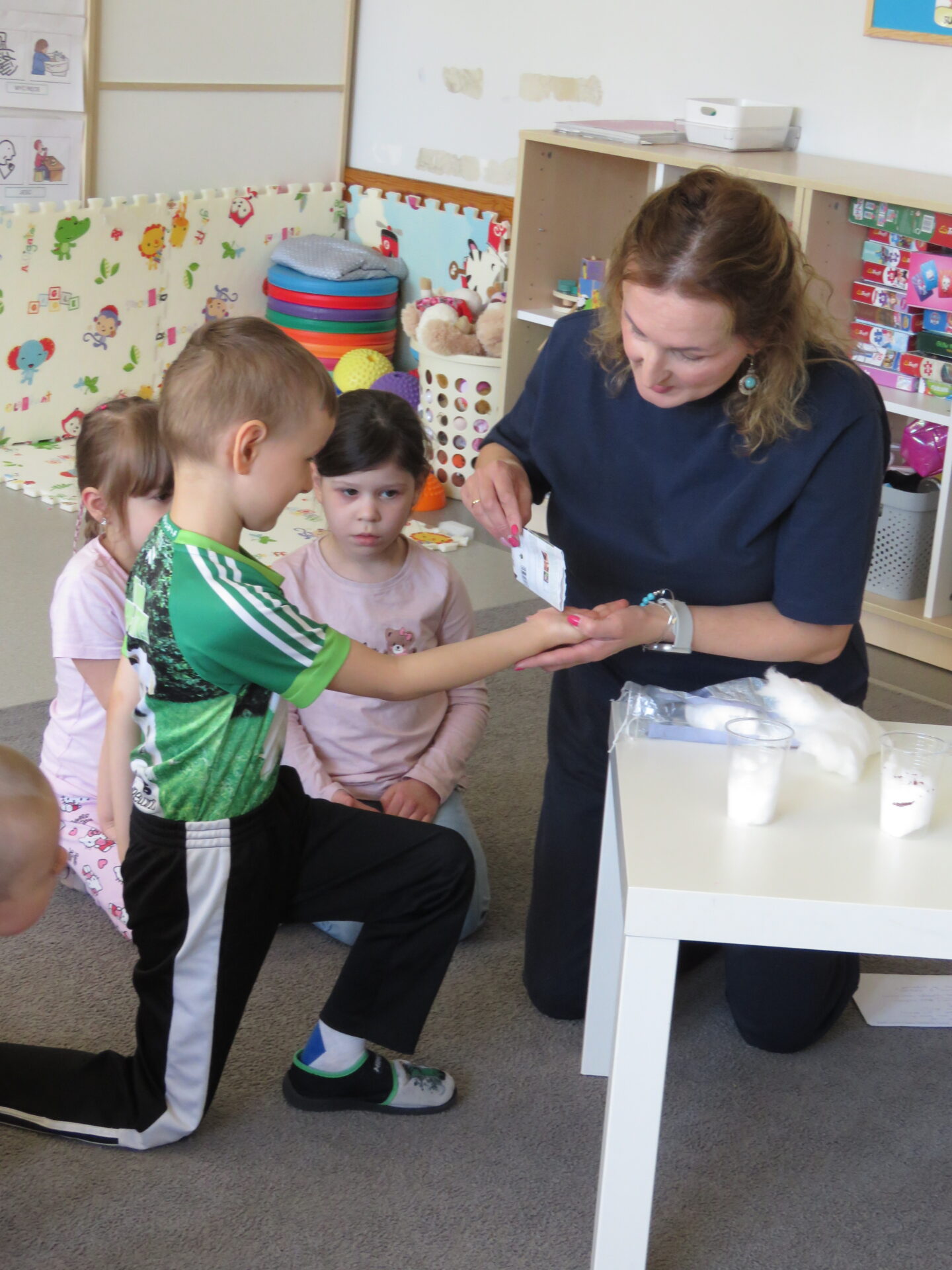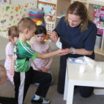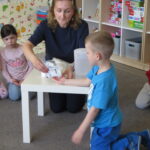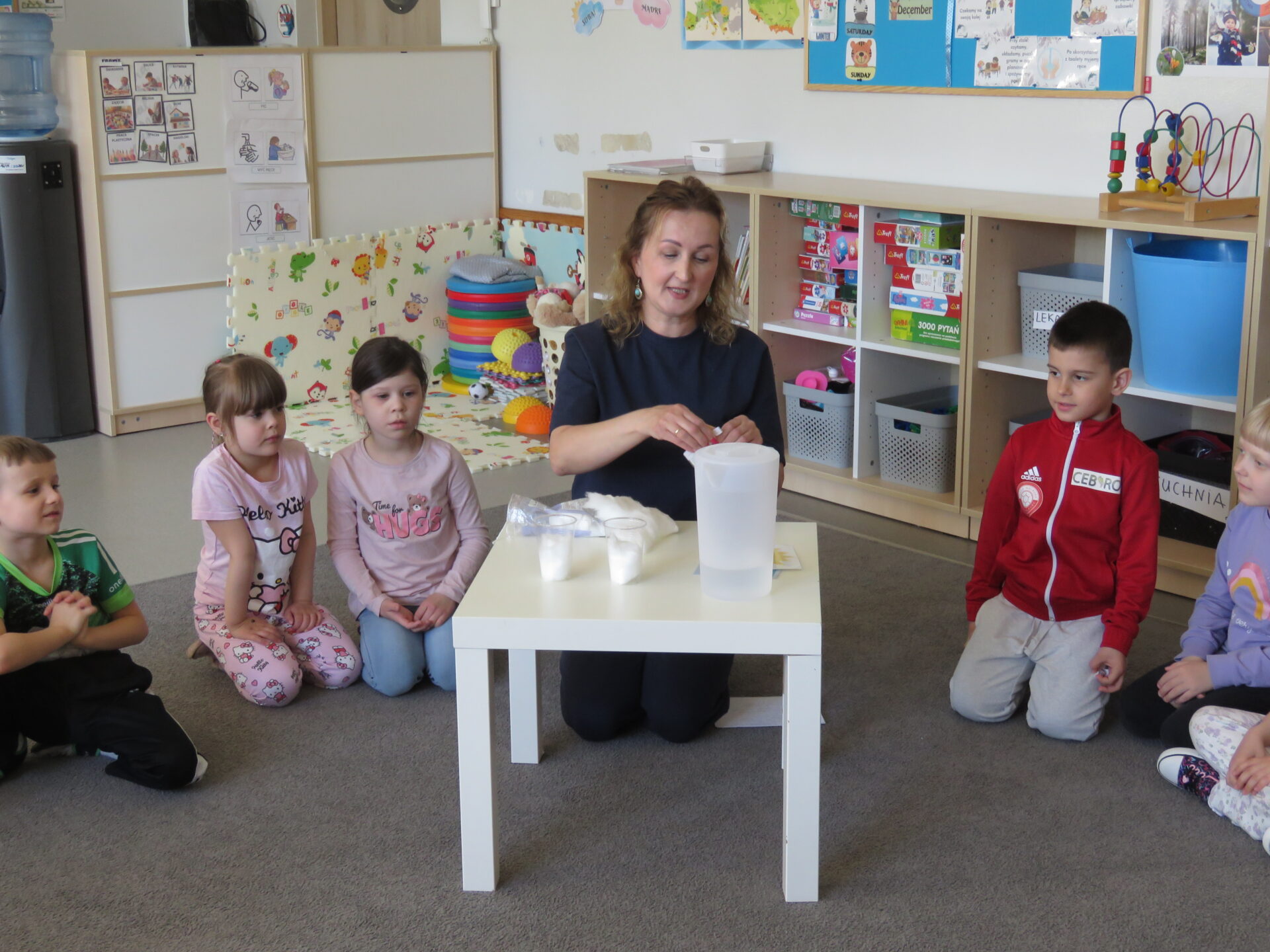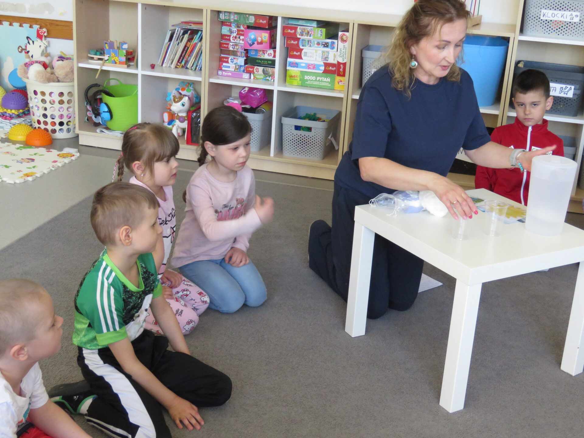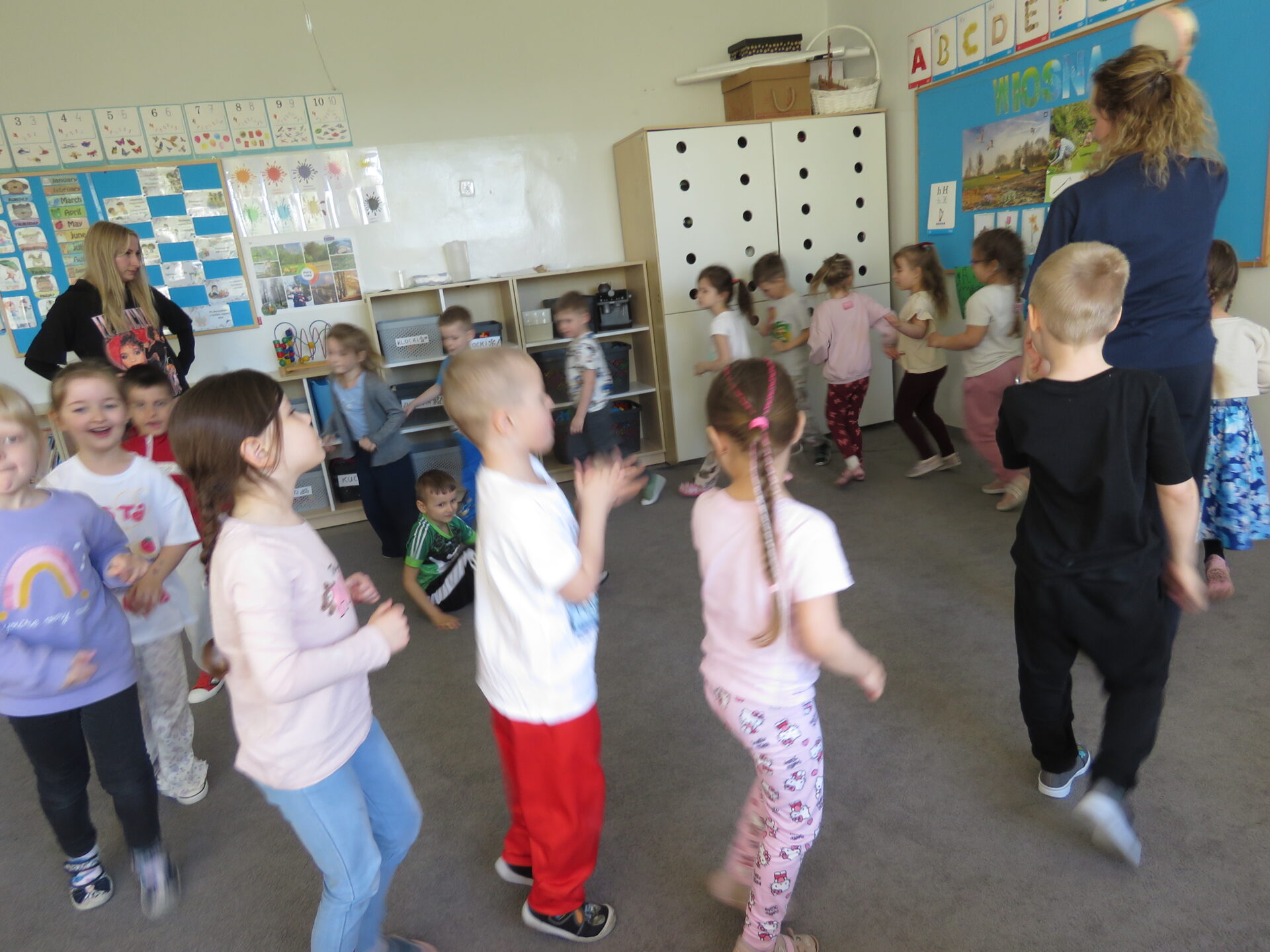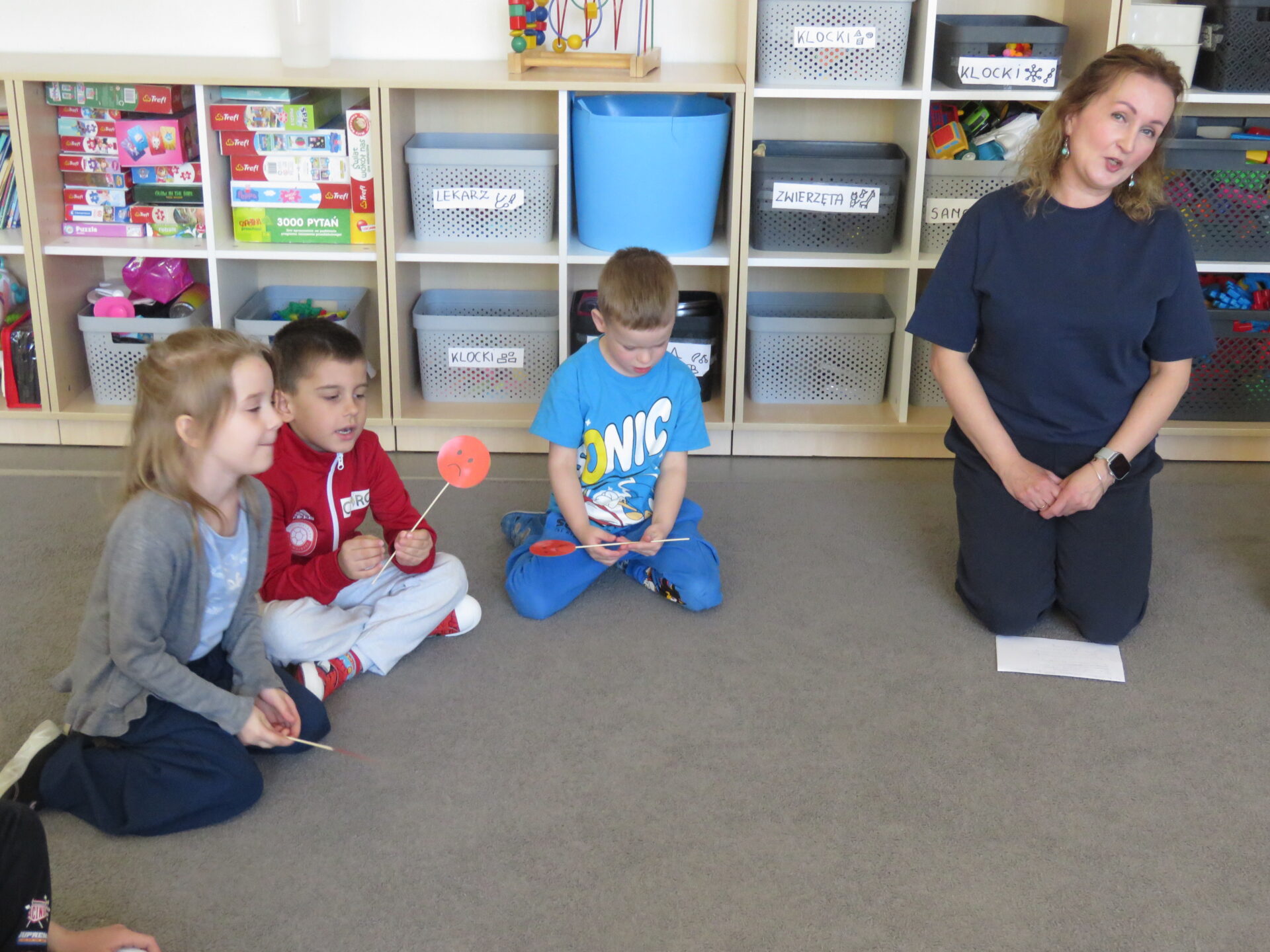 Dnia 20.04.2026r. nauczycielka grupy przedszkolnej „Fiołki” Pani Kamila Kapuścińska zorganizowała zajęcia otwarte na temat nowej pory roku – wiosny. Zajęcia obserwowały nauczycielki z naszego przedszkola. Na początku Pani Kamila zaprosiła dzieci do zabawy na powitanie, następnie wprowadziła przedszkolaków do zajęć zagadką o wiośnie.