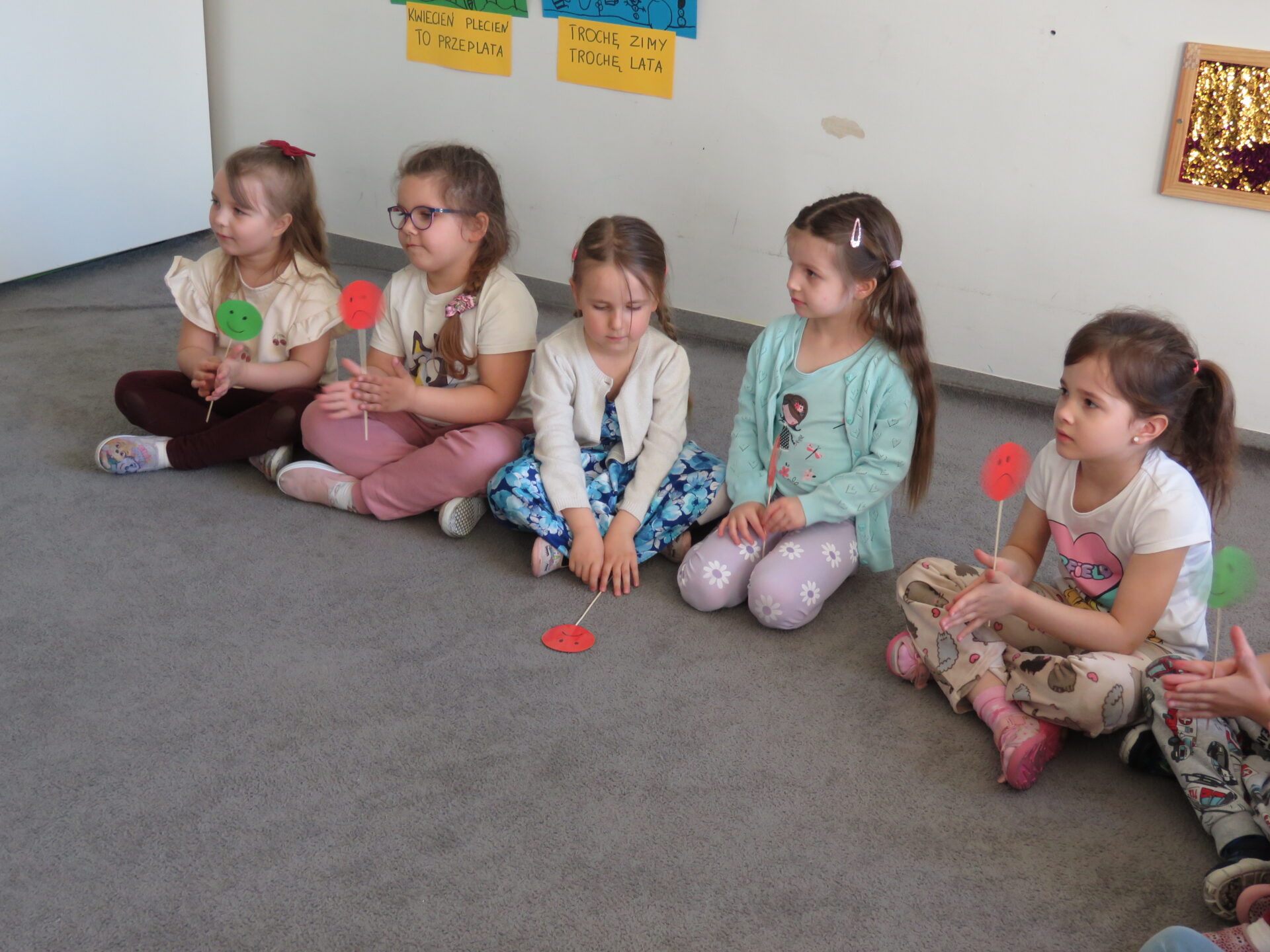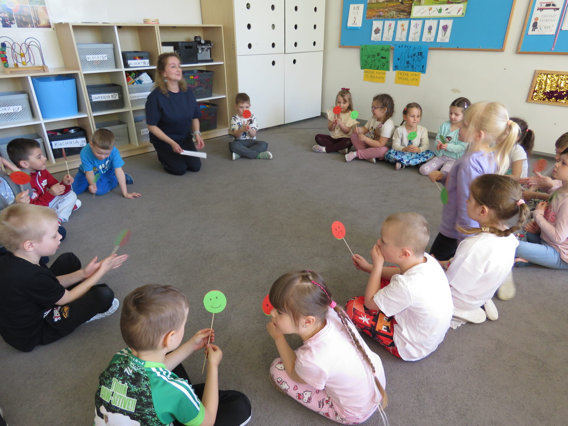 Na zakończenie przedszkolaki znakiem uśmiechniętej buźki oceniły, że zajęcia o wiośnie były dla nich ciekawe.
