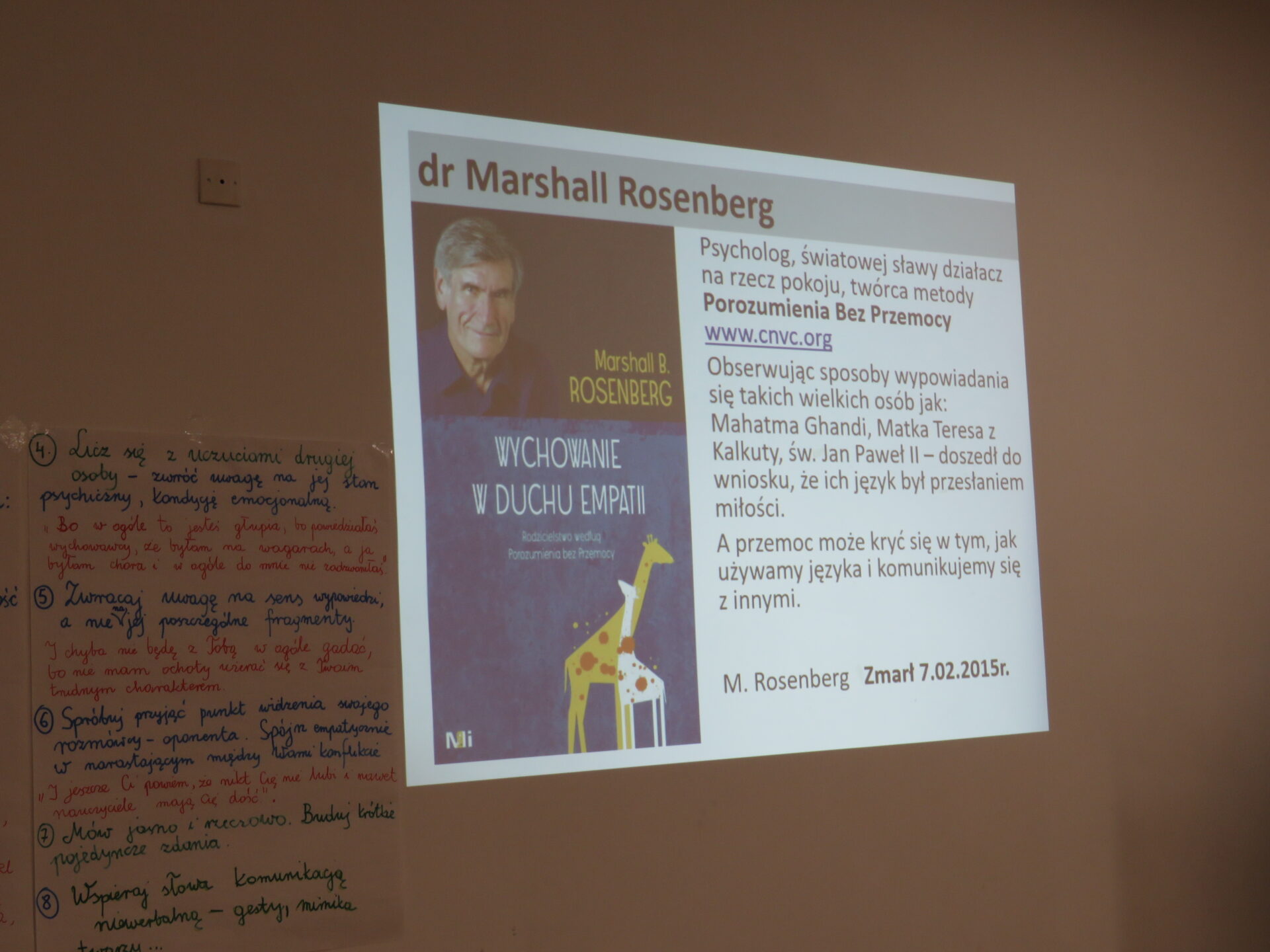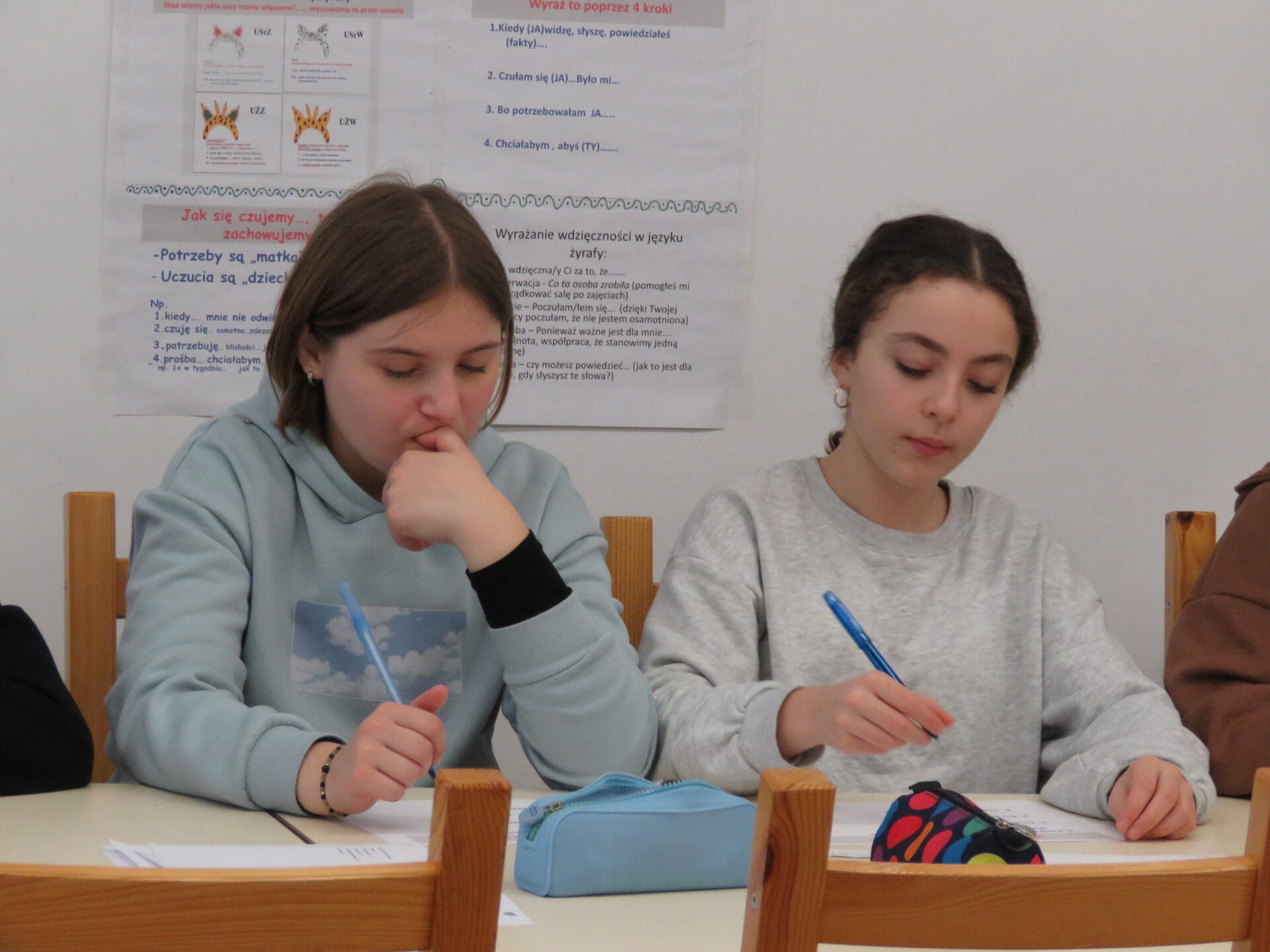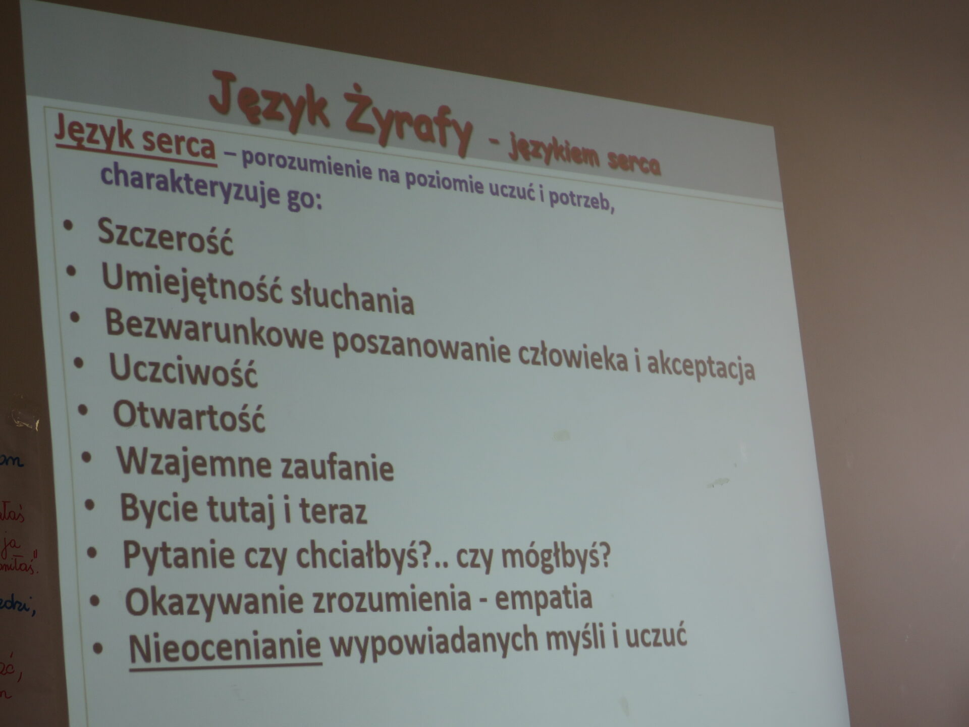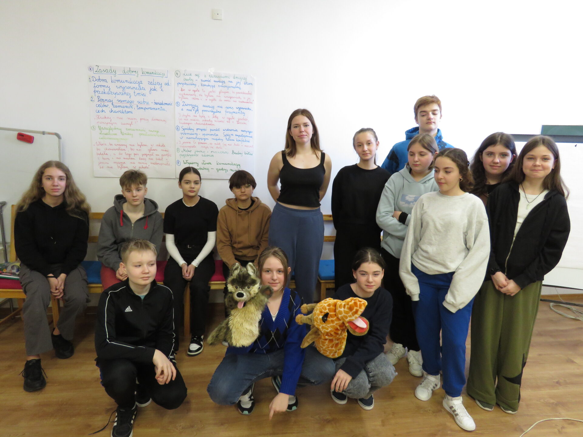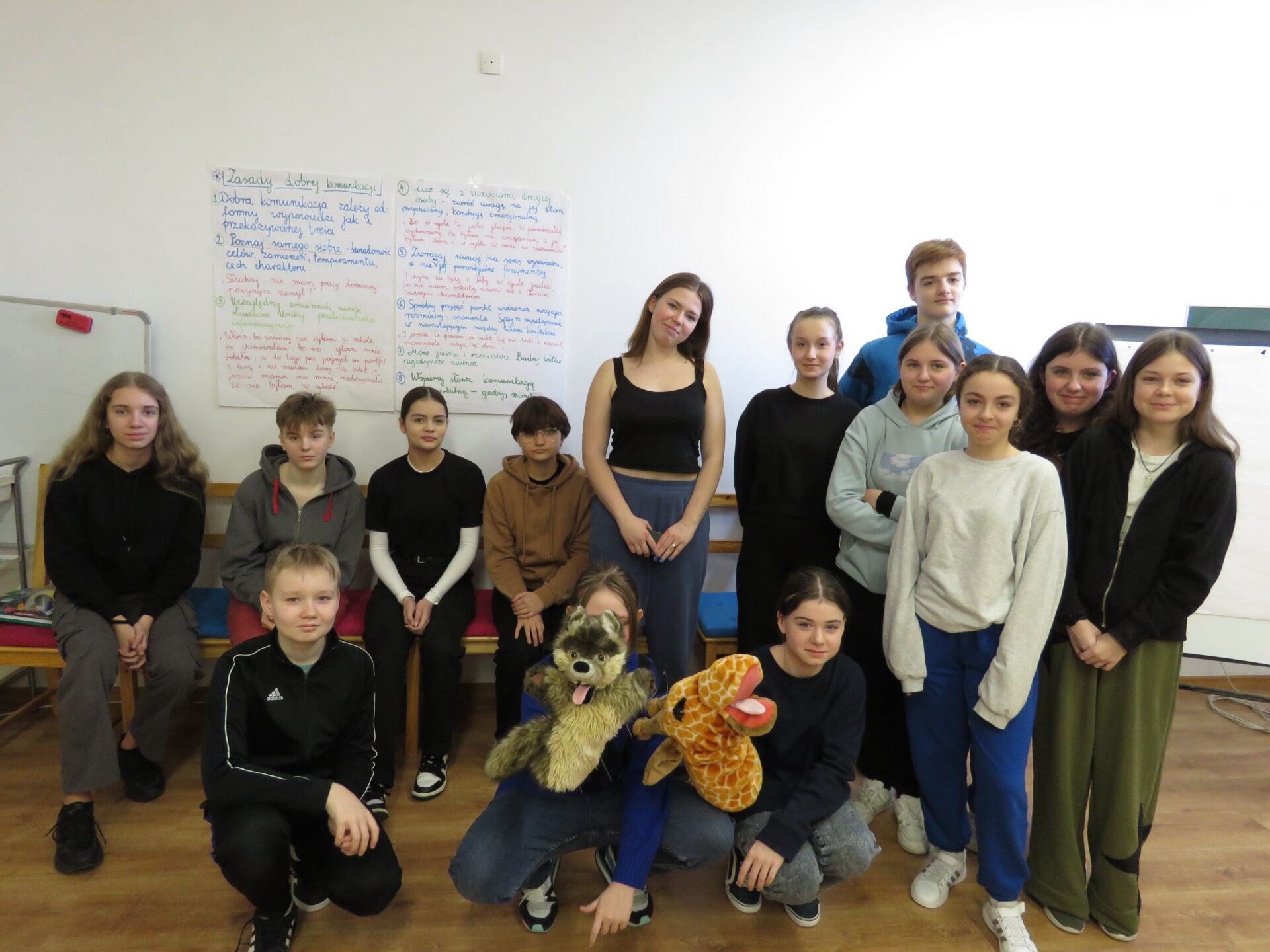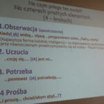 Opiekę nad wdrażanym projektem pełni Instytut Tutoringu Szkolnego z Wrocławia. Poniżej zdjęcia z zajęć, podczas których młodzież uczyła się jak porozumiewać się językiem serca – językiem żyrafy. Żyrafa jest przeciwieństwem szakala. Symbolizuje szczerość, umiejętność słuchania, rozumienia punktu widzenia innych, komunikowania się z innymi. Ma wielkie serce i jest reprezentantką empatii. Tutor młodzieżowy promuje w swoim otoczeniu empatyczny język żyrafy.