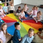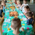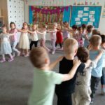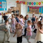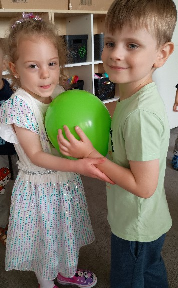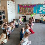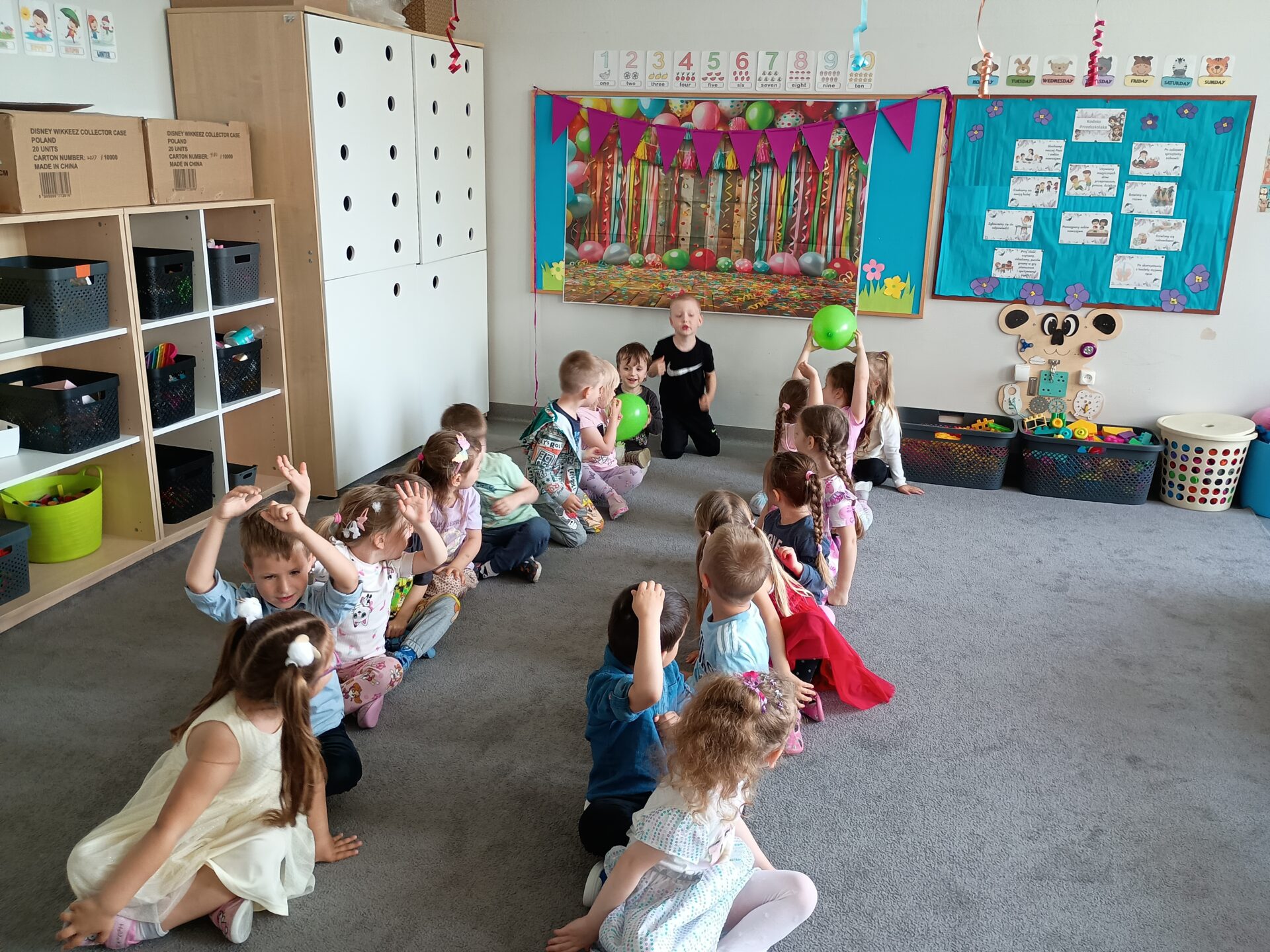 Impreza upłynęła przy ulubionej muzyce, zabawach z balonami, chustą animacyjną, tańczeniu w parach, śpiewaniu piosenek. Świętowanie zakończyło się poczęstunkiem, który przygotowali Rodzice dzieci obchodzących urodzinki.