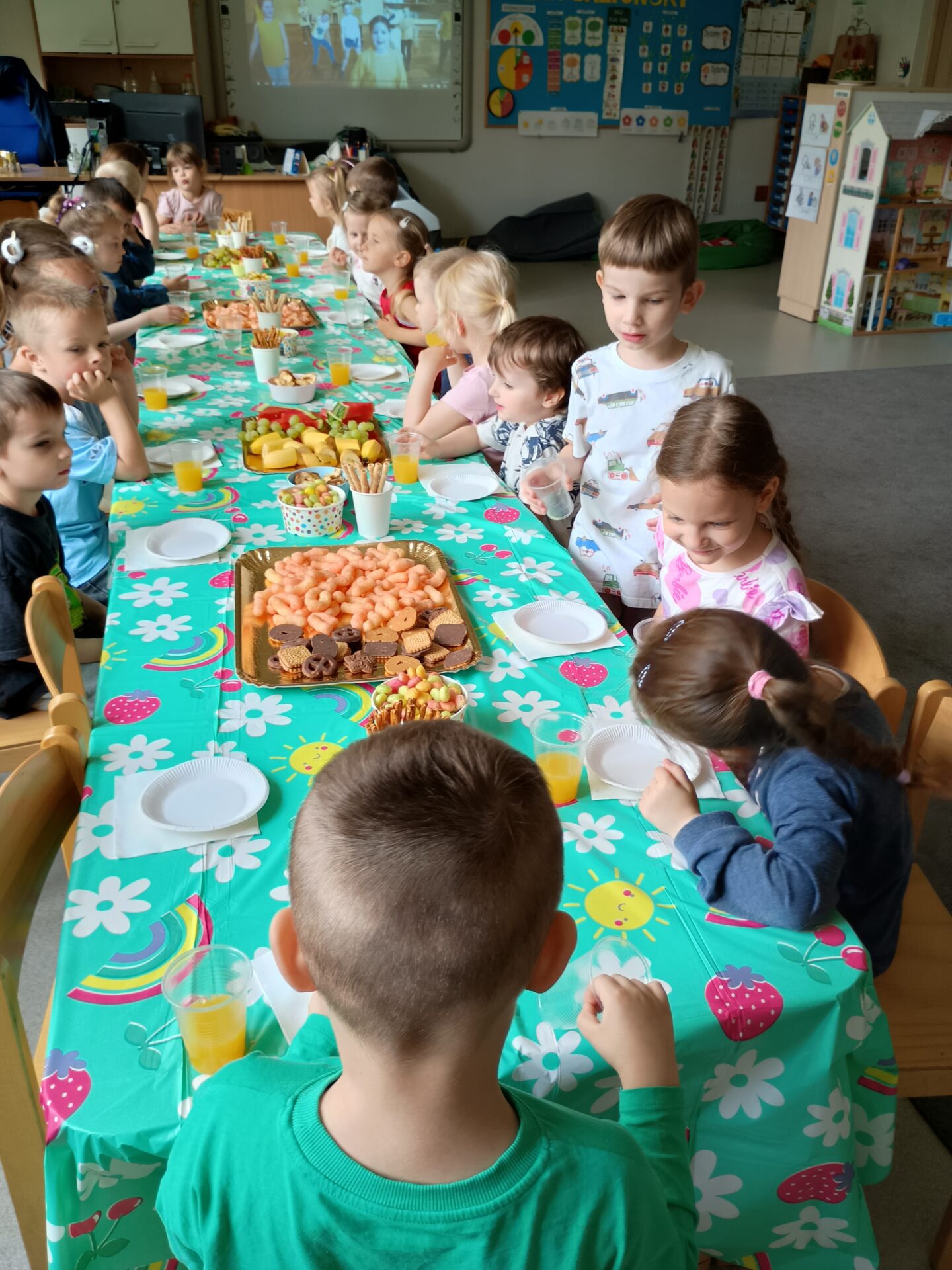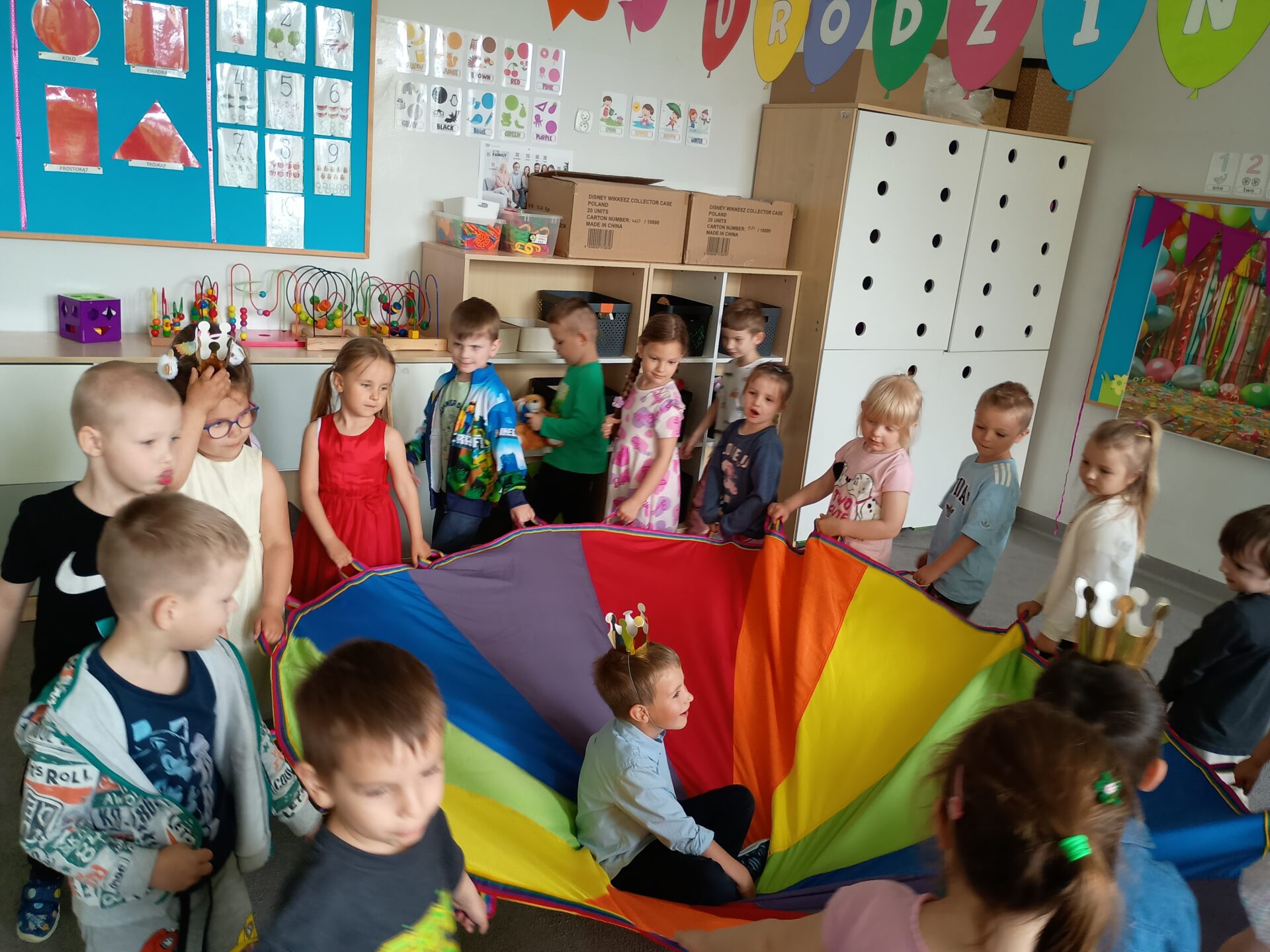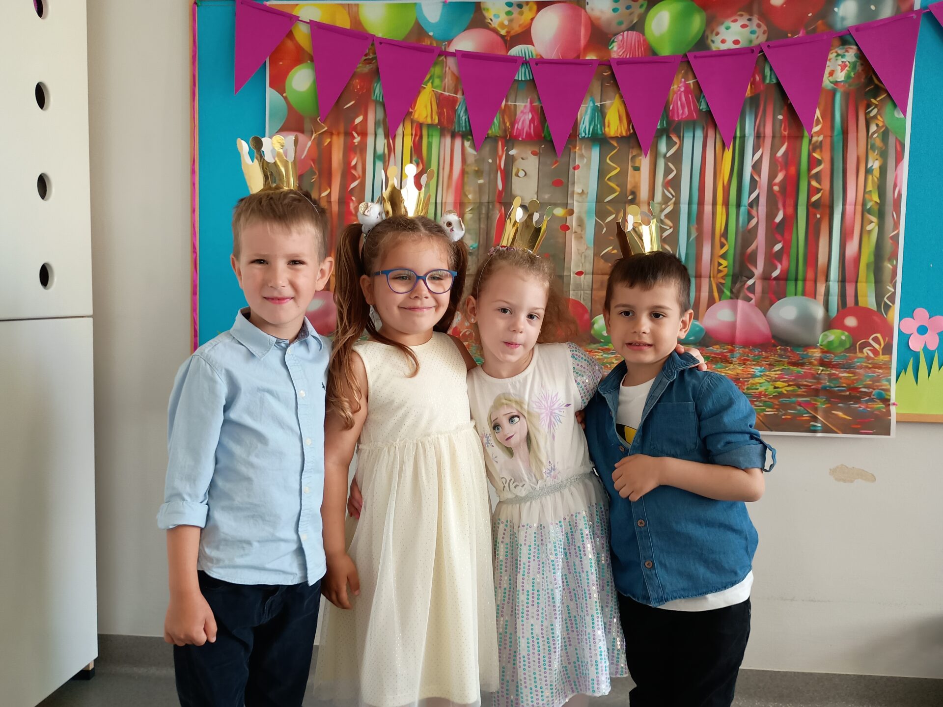 Uroczystość rozpoczęła się od założenia koron urodzinowych i zajęciu honorowych miejsc przez dzieci obchodzące swoje urodzinki, a koledzy i koleżanki z grupy zaśpiewali dla nich „Sto lat”