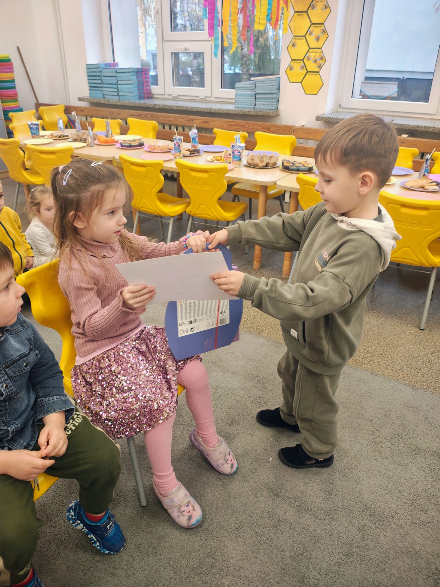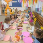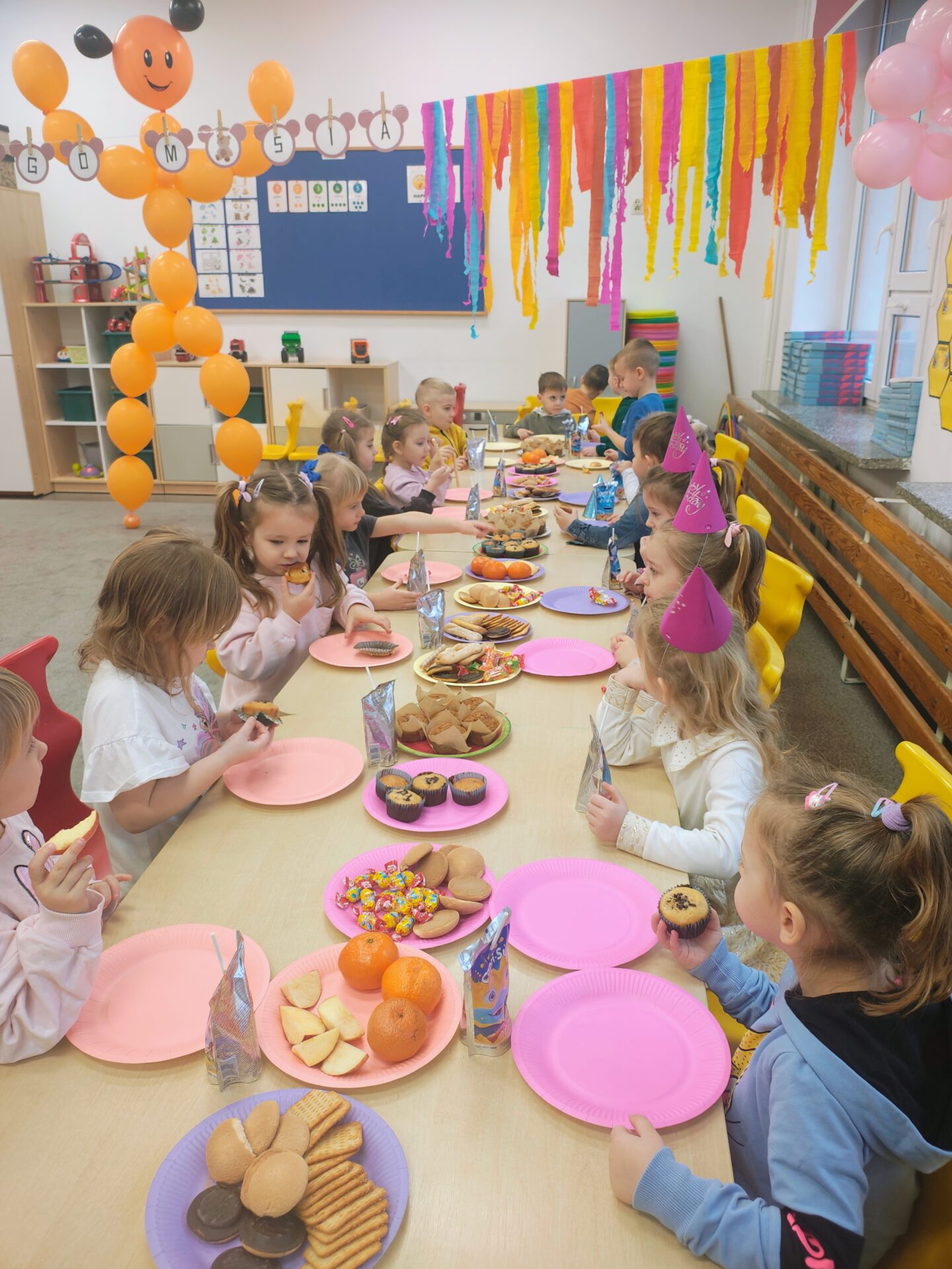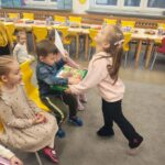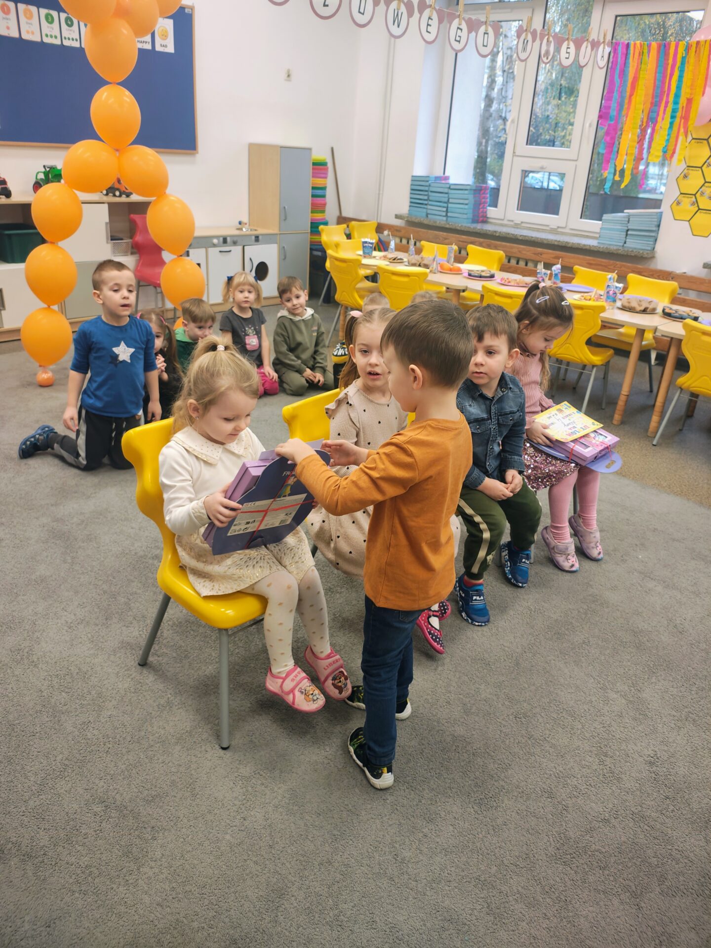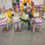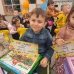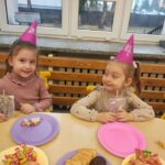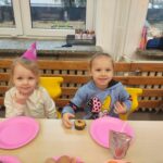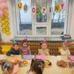To był dzień pełen radości, wspólnej zabawy i dobrego humoru. Jubilaci z dumą nosili urodzinowe czapeczki, a cała grupa odśpiewała im gromkie „Sto lat”. Nie zabrakło tańców, zabaw integracyjnych oraz serdecznych życzeń od kolegów i koleżanek.