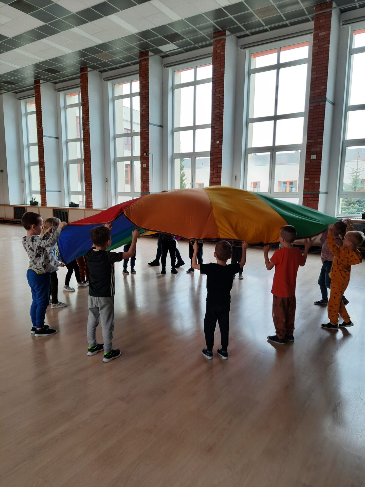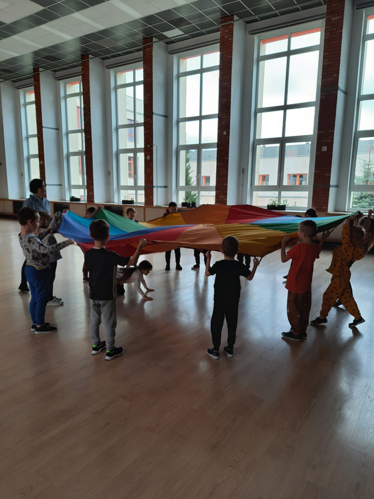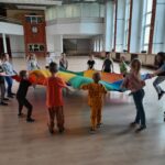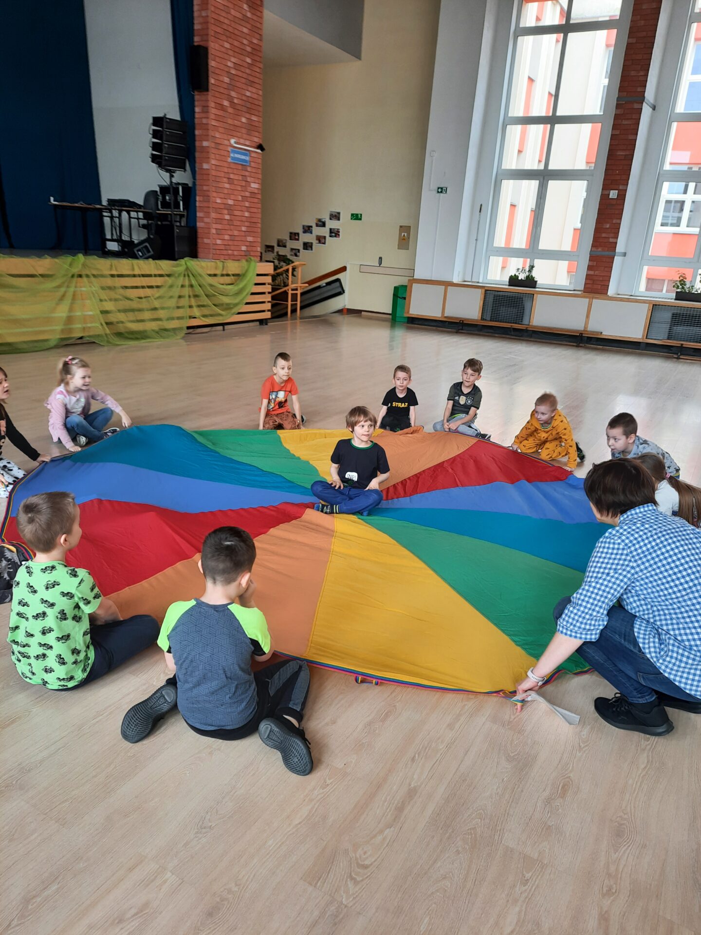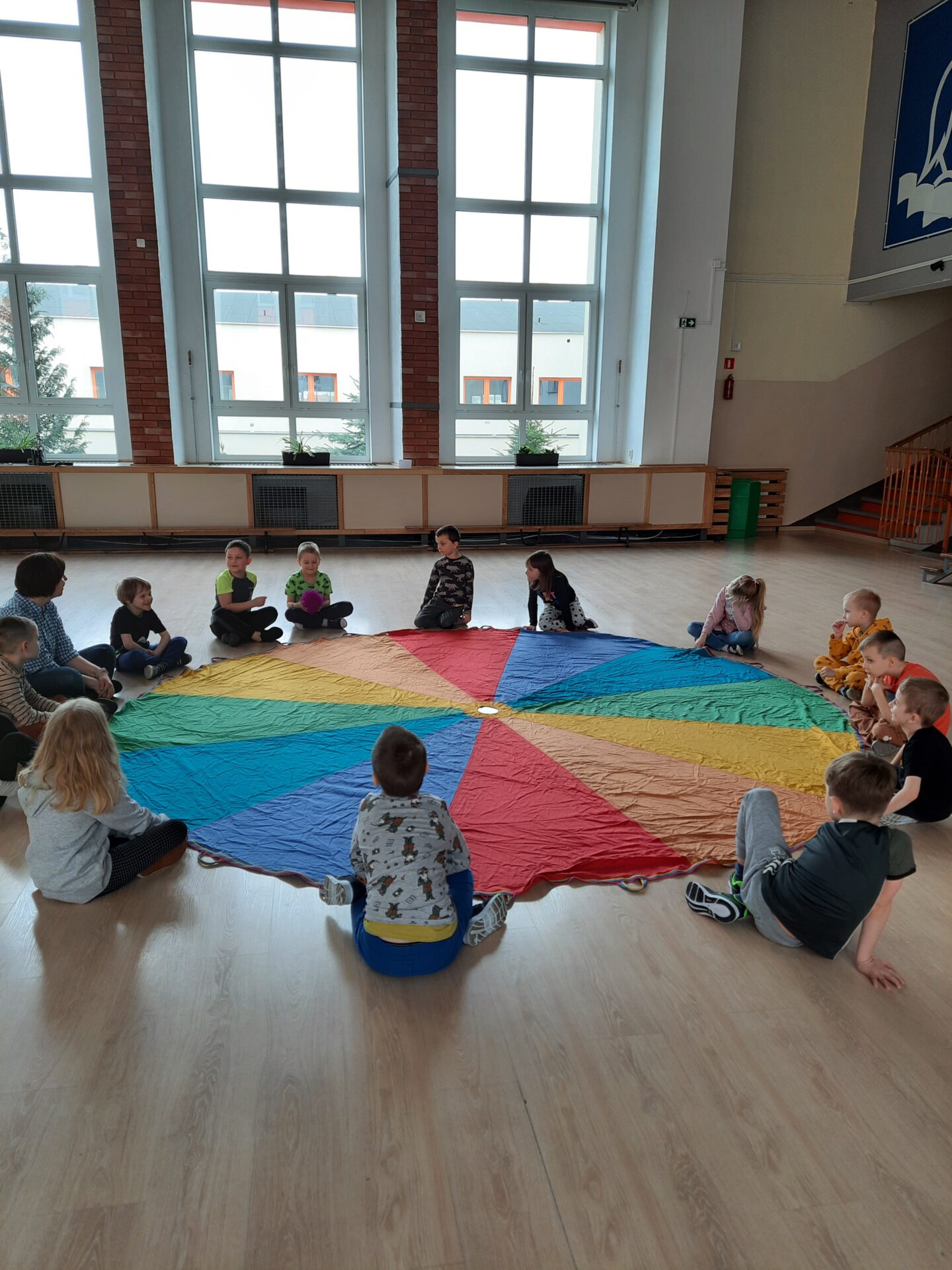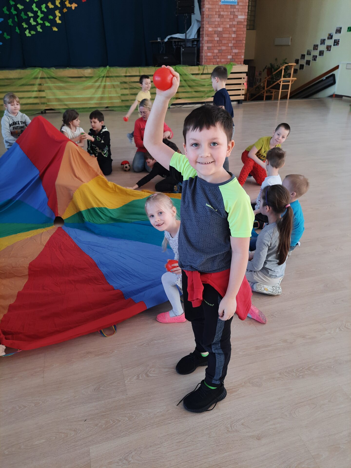 Elementem, który łączy wszystkie spotkania jest chusta animacyjna. Jest to duża wielobarwna chusta o kształcie koła, która sprawia, że dzieci fantastycznie się bawią, odkrywając coraz to nowe jej zastosowania podczas przeróżnych gier i zabaw zaproponowanych przez nauczycielki. Szczególnie ulubione to „Rybak i rybka”, „Naleśnik”, „Karuzela”, „Kurtyna”, „Bilard”, Prześlij przesyłkę”, „Podrzucanie piłki”, ‘Sałatka owocowa” , „Meksykańska fala” i mnóstwo innych…