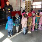 Strażacy opowiedzieli dzieciom o swojej codziennej służbie, jak również o tym, jakie kroki podejmować w przypadku pożaru. W trakcie rozmowy ze strażakami dowiedziały się dużo o ich trudnej, odpowiedzialnej i niebezpiecznej pracy. Zrozumiały, że strażak pomaga nie tylko w czasie pożaru, ale bierze również udział w akcjach ratowniczych np. w czasie wypadku drogowego. Strażacy przypomnieli w jakich okolicznościach można wezwać straż pożarną, a dzieci utrwaliły numer alarmowy – 998.