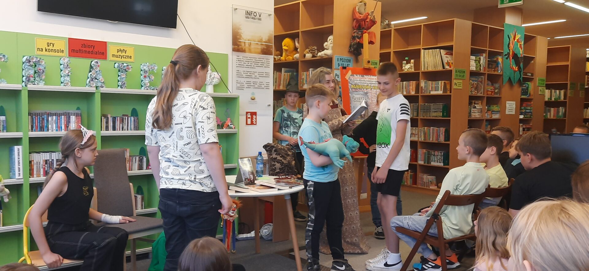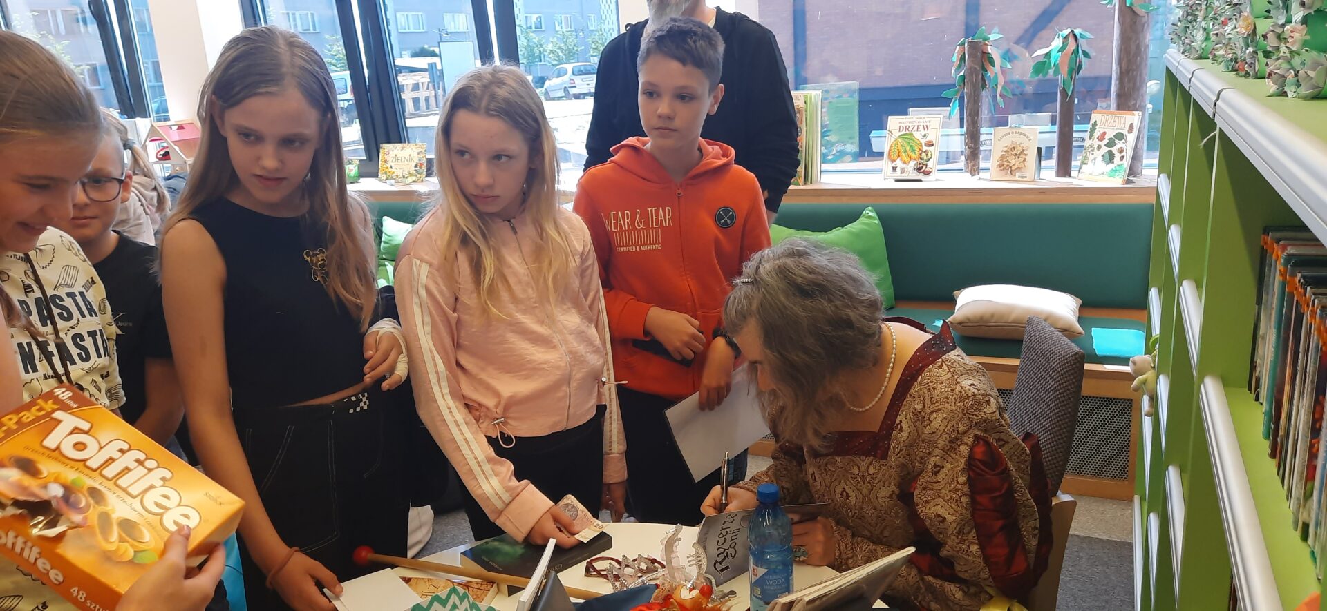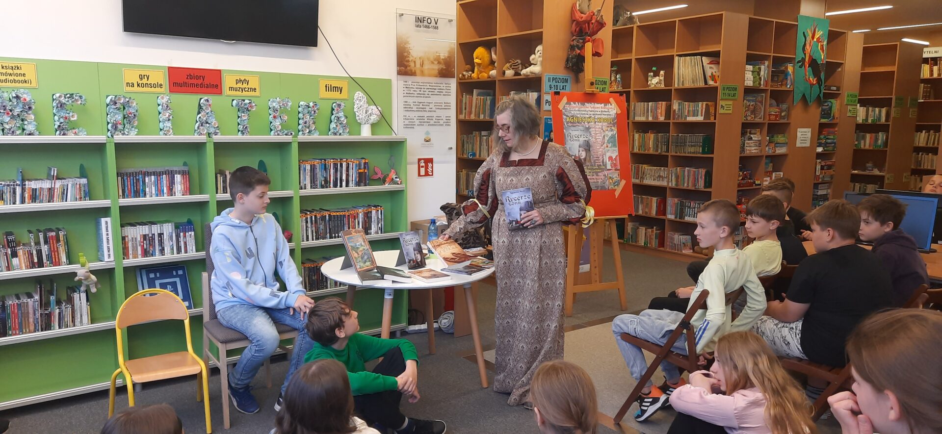 Pisarka ma dar pokazywania w jaki sposób ukrócić zło, jak mu się przeciwstawić. Czytając fragmenty lektury, zaprosiła uczniów do swojego świata, angażując ich do odtworzenia kilku scen. Uczniowie odegrali rolę Króla, Królewny, Błazna, Strażnika, Magika i wiele innych postaci. Dzieci były zachwycone możliwością wcielenia się w bohaterów literackich.