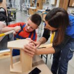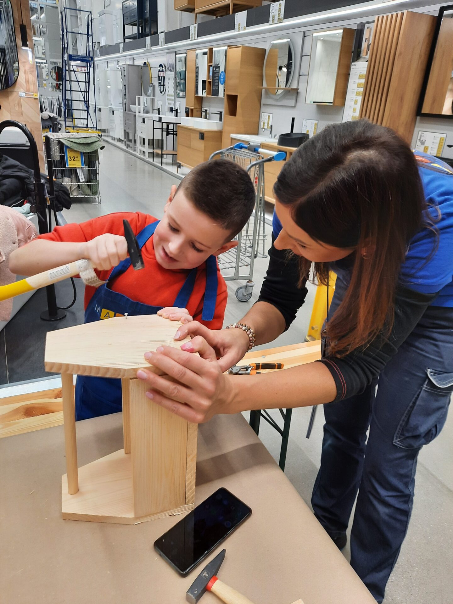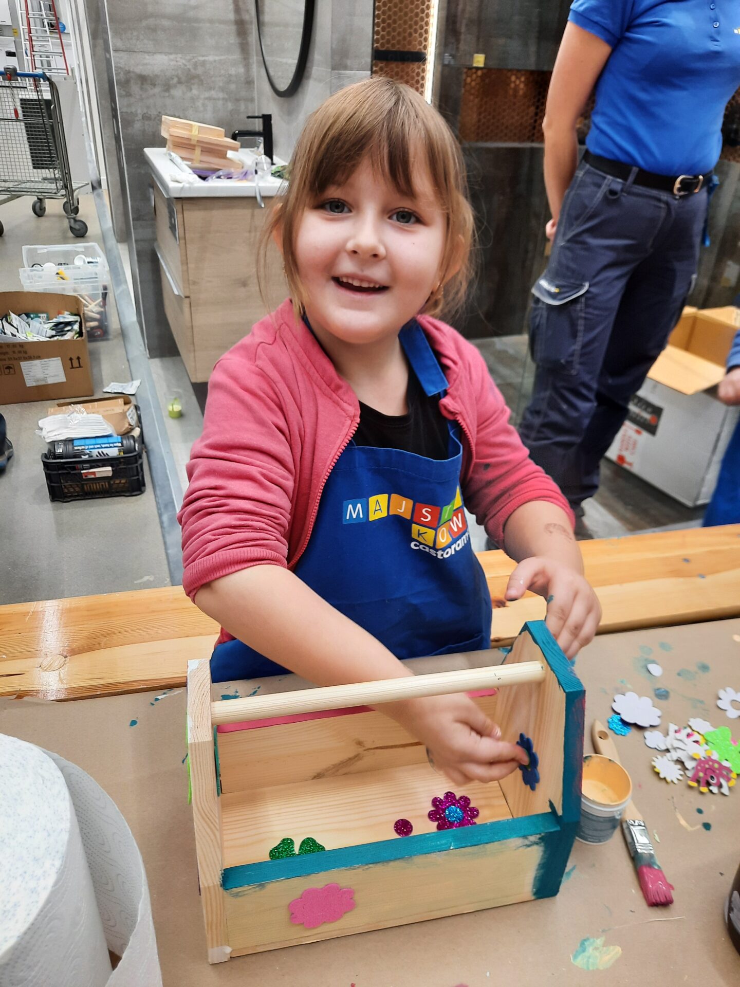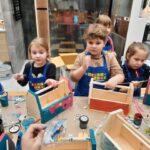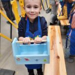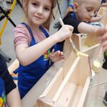 Z pomocą wykwalifikowanych pracowników Castoramy dzieci własnoręcznie skonstruowały drewniane skrzynki na swoje drobiazgi. Po zapoznaniu z zasadami bezpieczeństwa przedszkolaki z pełnym zaangażowaniem przybijały gwoździe i łączyły drewniane elementy. Wszyscy swoje prace wykonali bardzo starannie, samodzielnie podpisali i ozdobili według własnego pomysłu. Zajęcia odbyły się w miłej atmosferze, sprawiły dzieciom dużo radości i dumy z własnych dokonań.