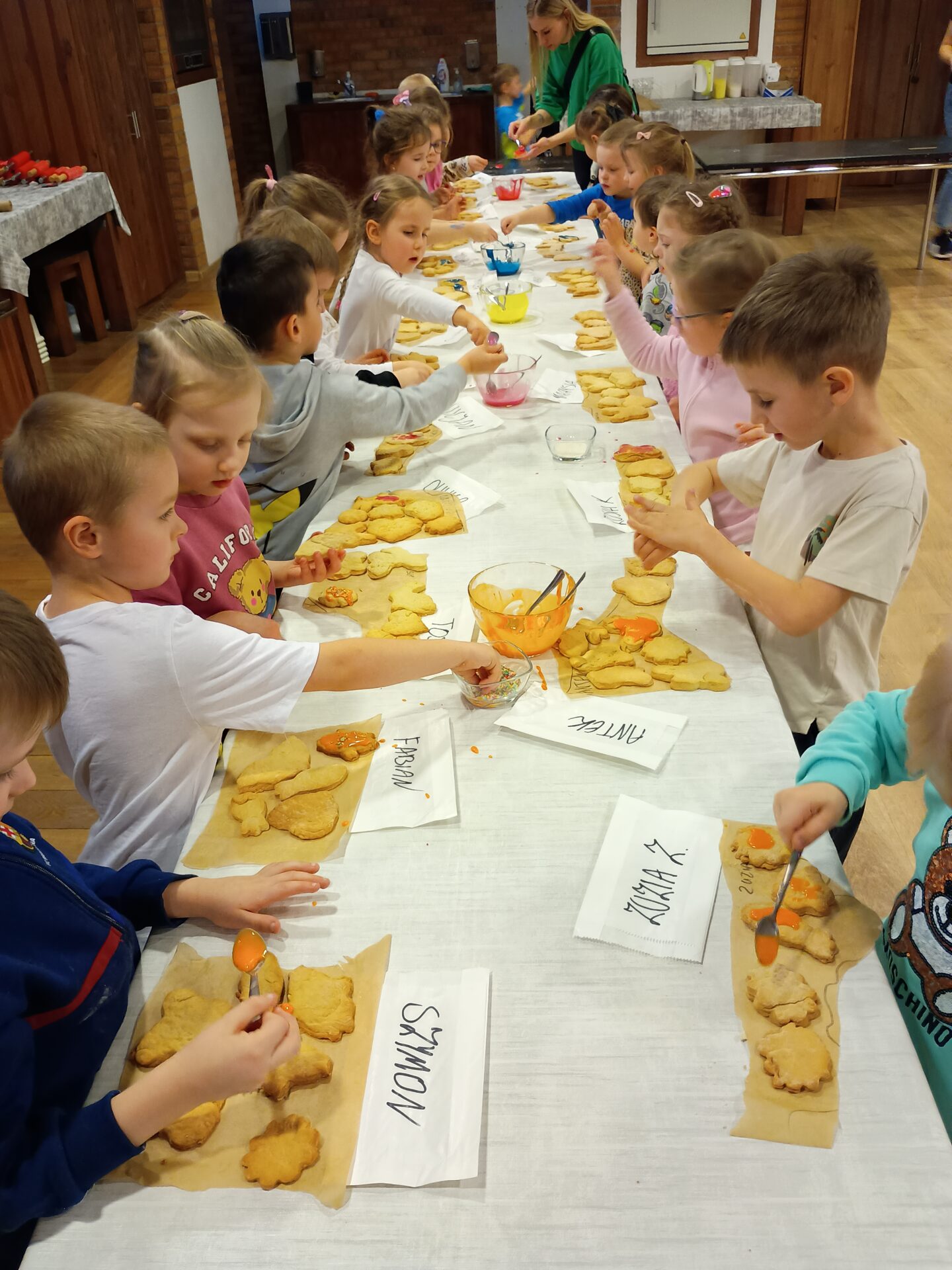 Przedszkolaki miały okazję stworzyć przy pomocy Pań prowadzących własne wielkanocne dekoracje, ciasteczka, które po upieczeniu mogły samodzielnie polukrować i ozdobić według własnego pomysłu. Uczestniczyły także w zorganizowanych zabawach ruchowych, a chętne dzieci mogły wziąć udział w sesji zdjęciowej.