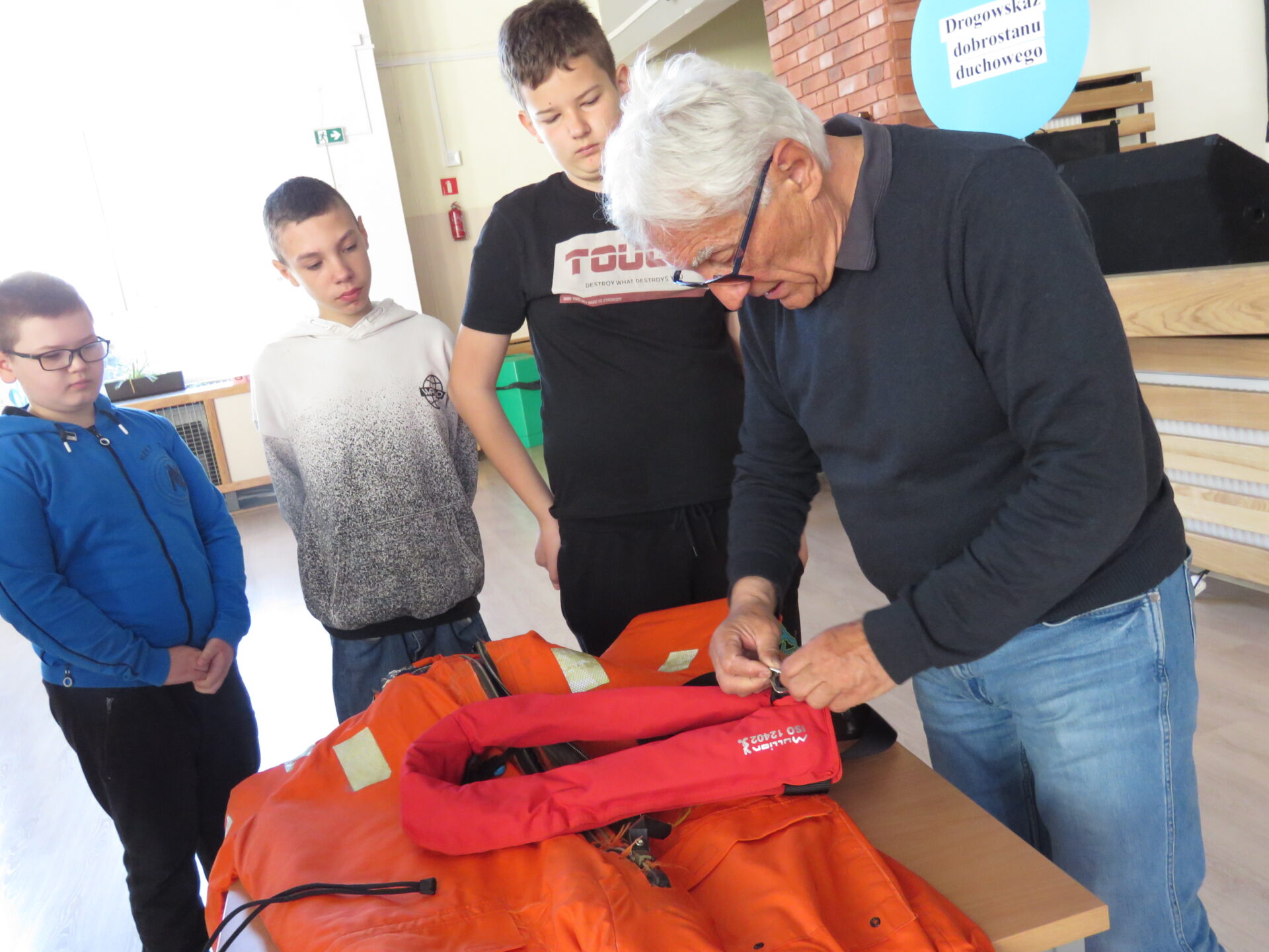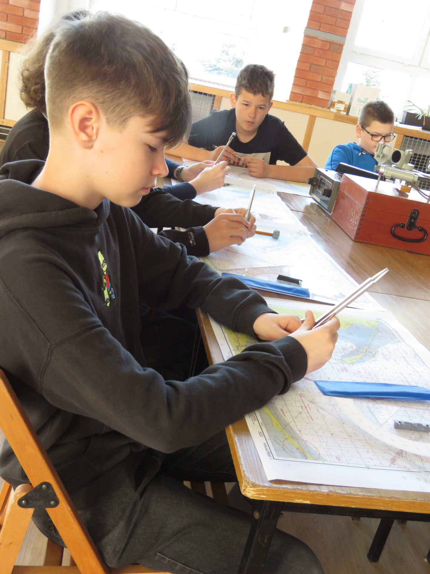 Uczniowie podczas zajęć dowiedzieli się czym jest kartografia. Młodzież nanosiła punkty na mapie morskiej oraz obliczała odległości między punktami. Posługiwali się przyrządami kartograficznymi. Nauczyli się jak wiązać różne węzły żeglarskie, mierzyć mile morskie na mapie i poprawnie zakładać koło ratunkowe. Ważnym punktem zajęć była pierwsza pomoc na obiektach wodnych.
