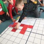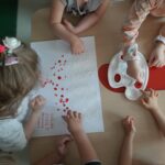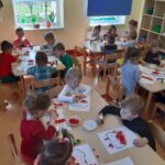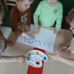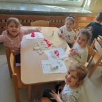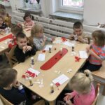 Bardzo ważnym elementem przeprowadzonych zajęć było zwrócenie uwagi na obecność w naszym kraju wielu ludzi z Ukrainy, którym należy okazywać szacunek oraz wsparcie z powodu trudnej sytuacji społeczno – politycznej, w której się znaleźli. W ramach solidarności z Ukrainą dzieci dekorowały flagę Ukrainy, poznawały ukraińskie tradycje i zwyczaje, uczyły się podstawowych zwrotów, co miało na celu wzmocnienie integracji przedszkolaków z nowymi przyjaciółmi z Ukrainy.