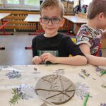 Przy pomocy wykałaczek, ołówków oraz specjalnych patyczków do modelowania masy, uczniowie wyczarowali prawdziwe cudeńka w glinie. Rysowali, rzeźbili oraz lepili i doklejali kuleczki i wałeczki w nierzadko wymyślny i kreatywny sposób. Na kolejnych zajęciach czeka ich jeszcze szkliwienie swoich projektów, a po wypaleniu prac w specjalnym piecu garncarskim, pozostanie już tylko podziwianie dzieła własnych rąk. I myślę, że to będzie najprzyjemniejszy moment dla każdego ceramika – amatora z 1d.