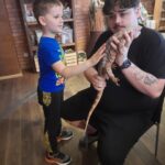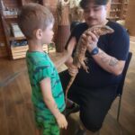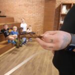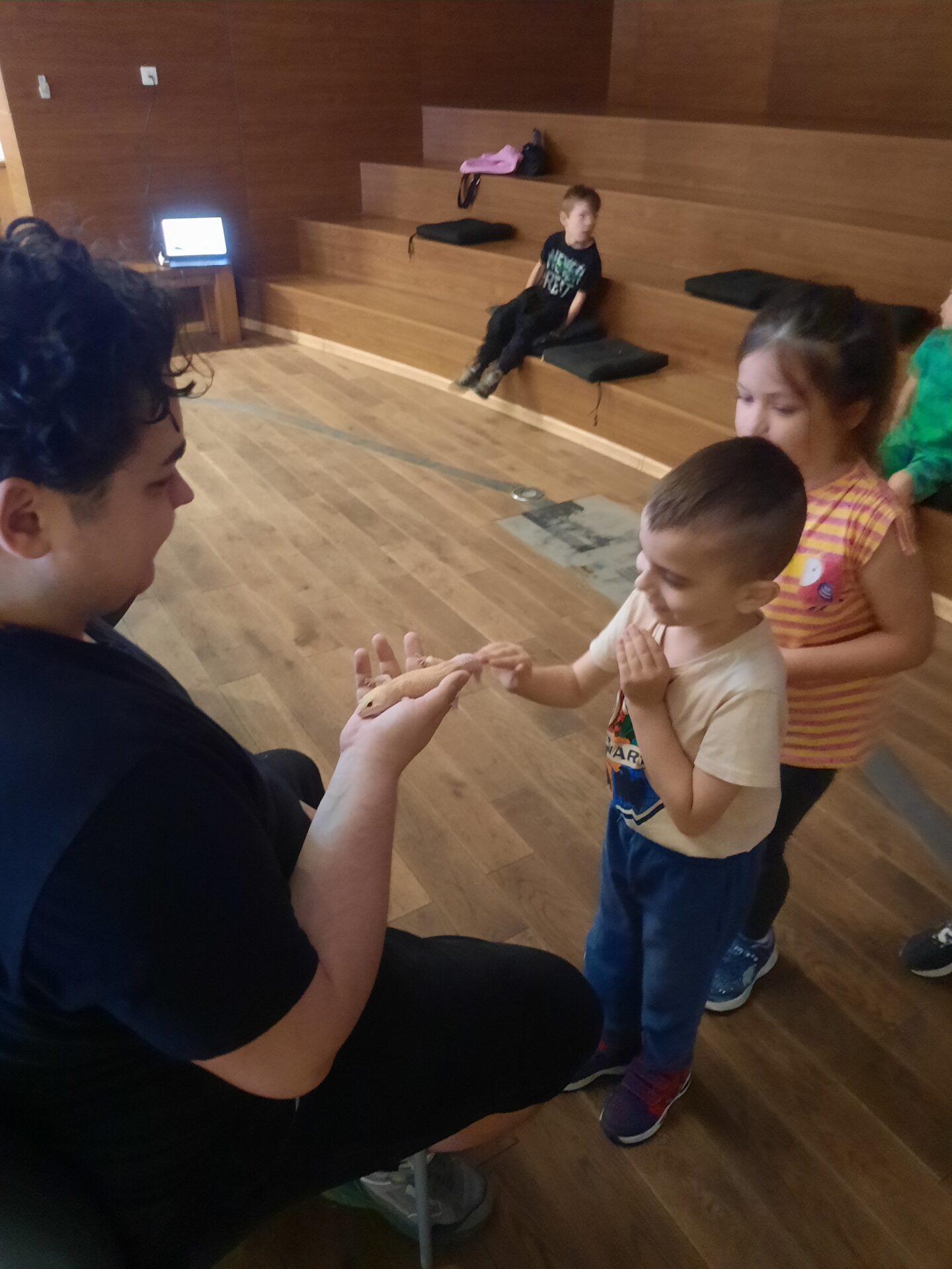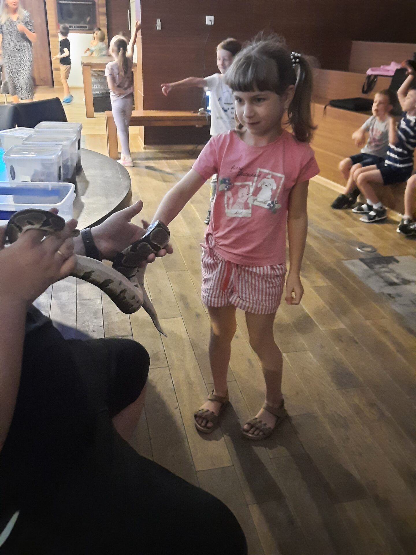 Później prowadzący zaprezentował nam piątkę swoich podopiecznych – tarantulę, pytona, skorpiona, jaszczurkę i gekona. Po zapoznaniu się z nimi mieliśmy możliwość pogłaskania niektórych zwierząt. Spotkanie z tymi wspaniałymi zwierzętami było niezwykle emocjonujące i przybliżyło dzieciom ich niezwykłe zwyczaje.
